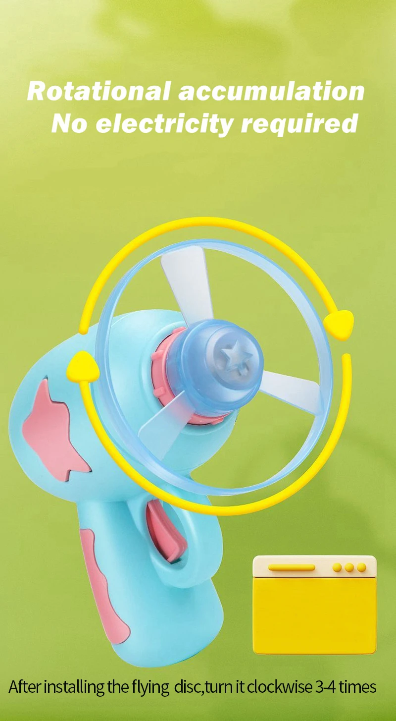2. When using the toy, you must first put the flying disc on the launcher and align it correctly, and then twist it 3-4 times before it can be launched normally. If the flying disc is not aligned with the position of the launcher,the flying disc will not be able to rotate and the toy will not work.