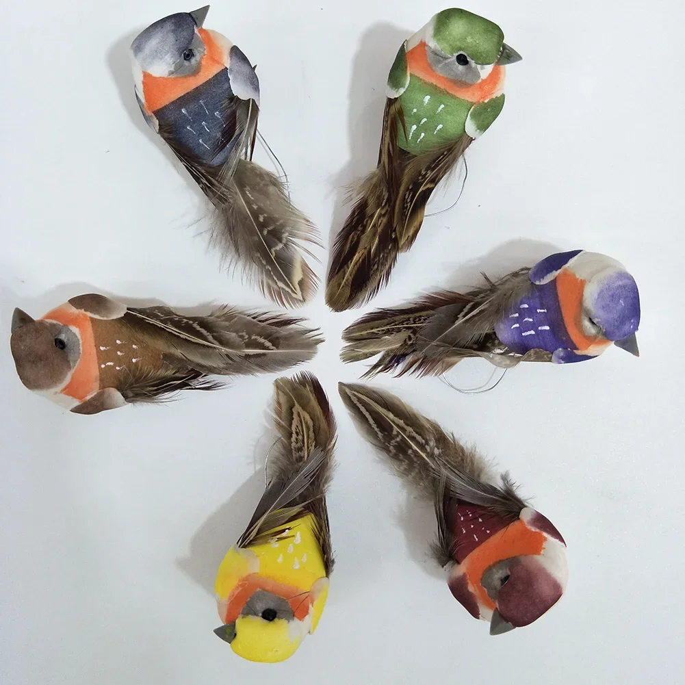 12pcs Bird Miniature Decoration DIY Crafts Foam Feather Artificial Fake Birds Garden Prop Collectible for Home Garden Ornaments