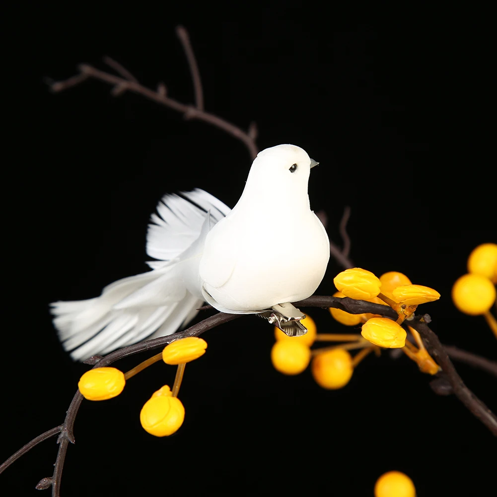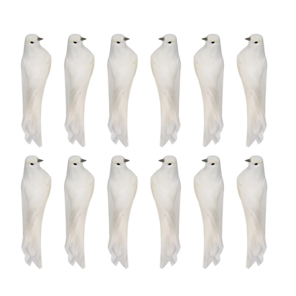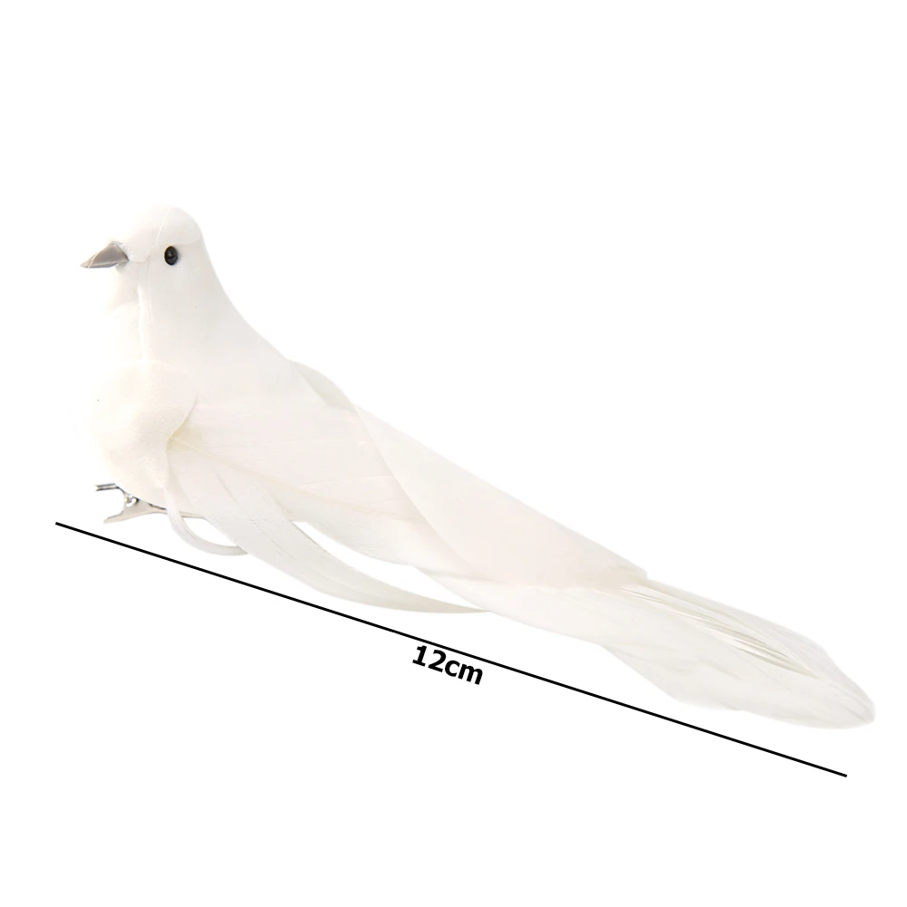 12pcs Feather Artificial Birds Handmade DIY Crafts White Feathered Bird with Clips Handcrafts Vividly Supplies Decorative