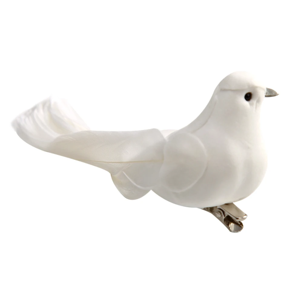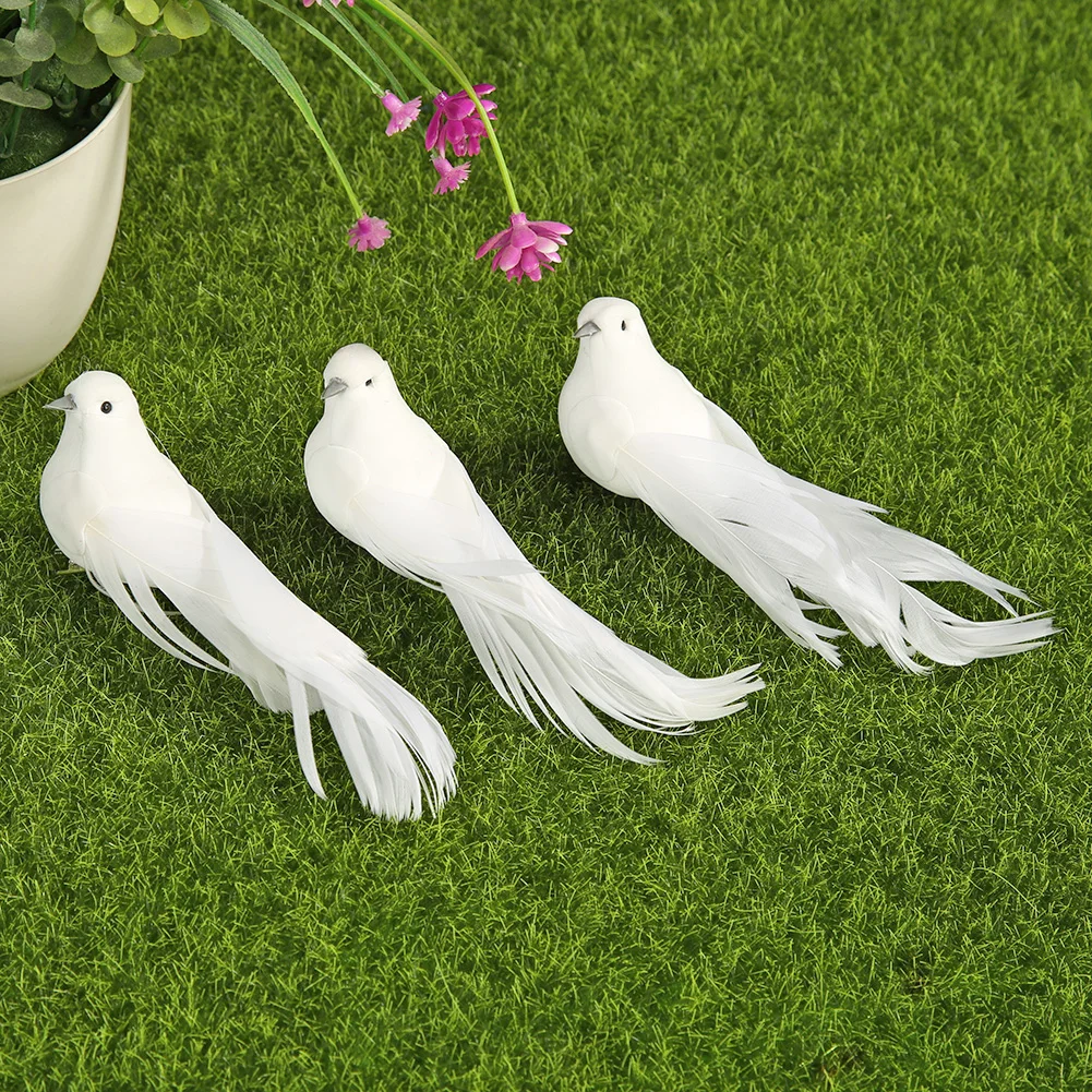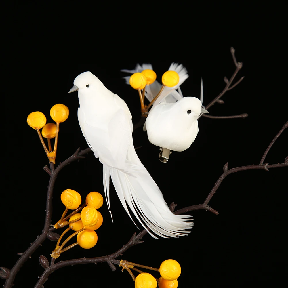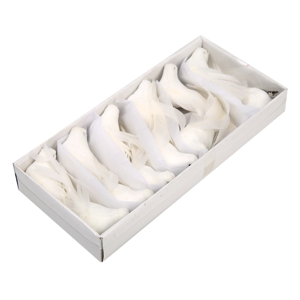 12pcs Feather Artificial Birds Handmade DIY Crafts White Feathered Bird with Clips Handcrafts Vividly Supplies Decorative