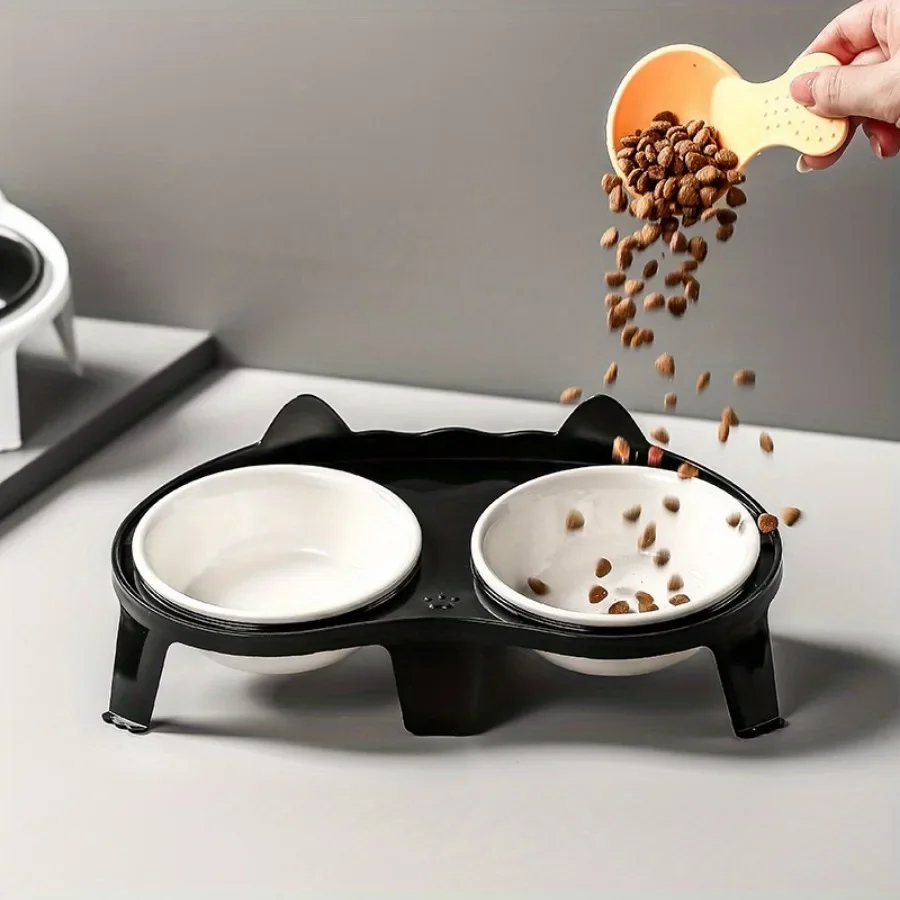 1pc Cat Food Bowl Set Pet Drinking Water Feeding Integrated Food Bowl Overhead Cat Bowl Non-slip Stand Cat Bowl Rack