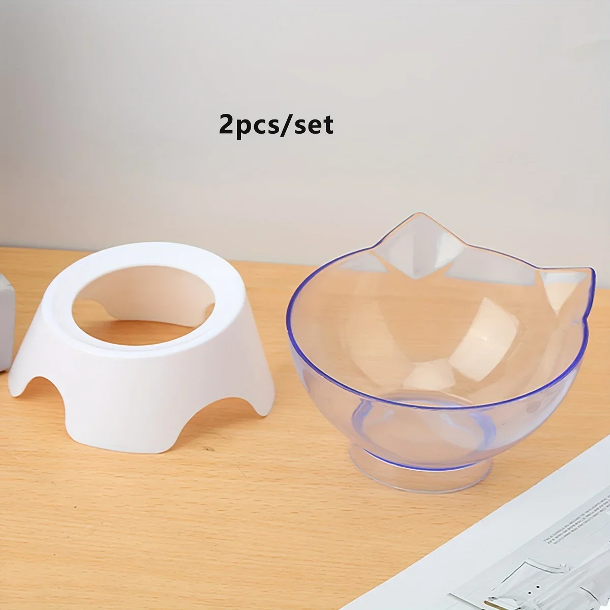 1pc For Cats Dogs Feeders Non-slip Pet Food and Water Bowls Cat Bowl Feeding Products Pet Supplies With Stand Base Transparent