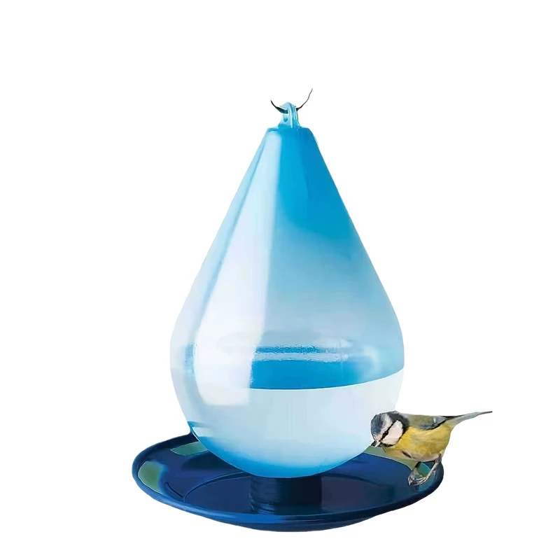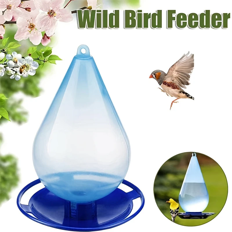 1PC Transparent Blue Bird Feeder Durable Plastic Outdoor Garden Patio Hanging Design Easy to Clean Attracting Wild Birds