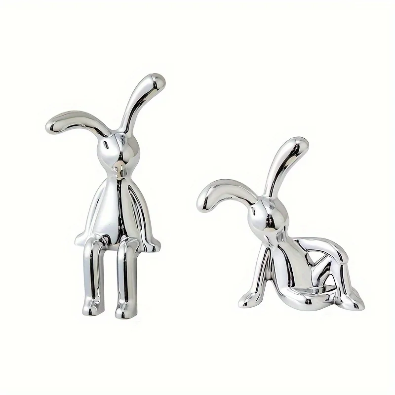 1pcs Long Eared Rabbit Double Statue Cartoon Decoration Accessory Living Room Bedroom Mini Figurine Decoration Desktop Accessory