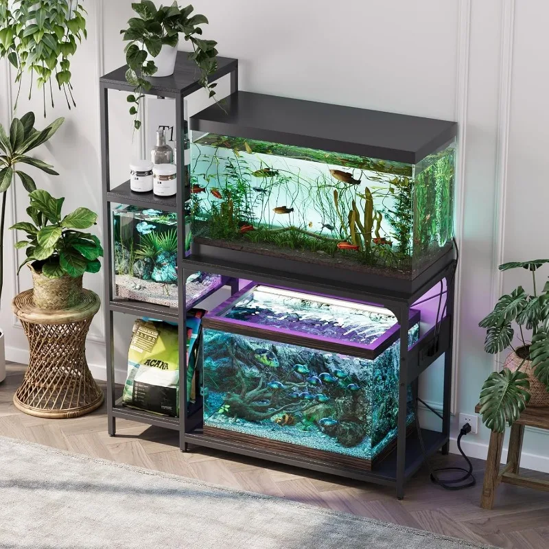 - Multi-layer Storage: The side 3 layers storage shelves provide ample storage space for fish accessories, plants, books, and more decos. More flexibility for your storage