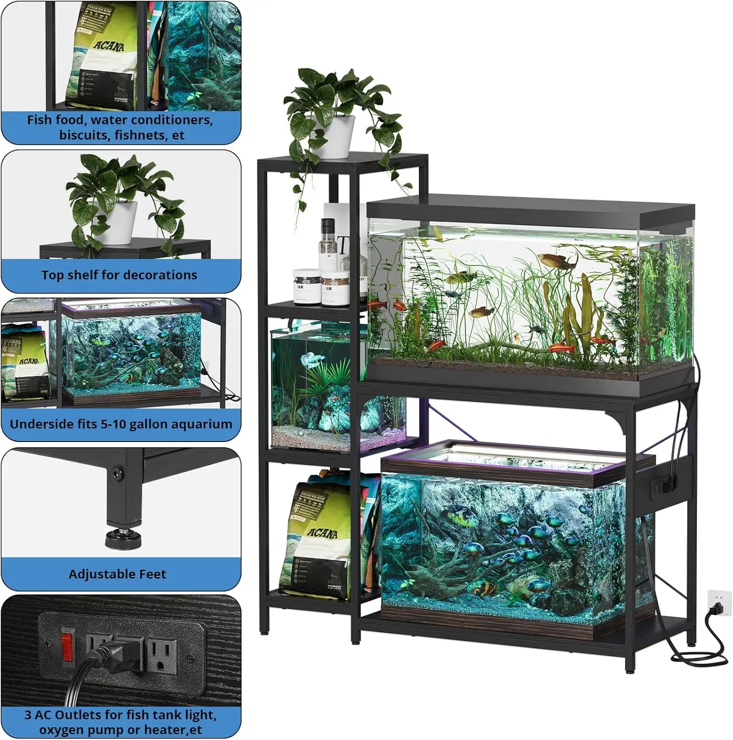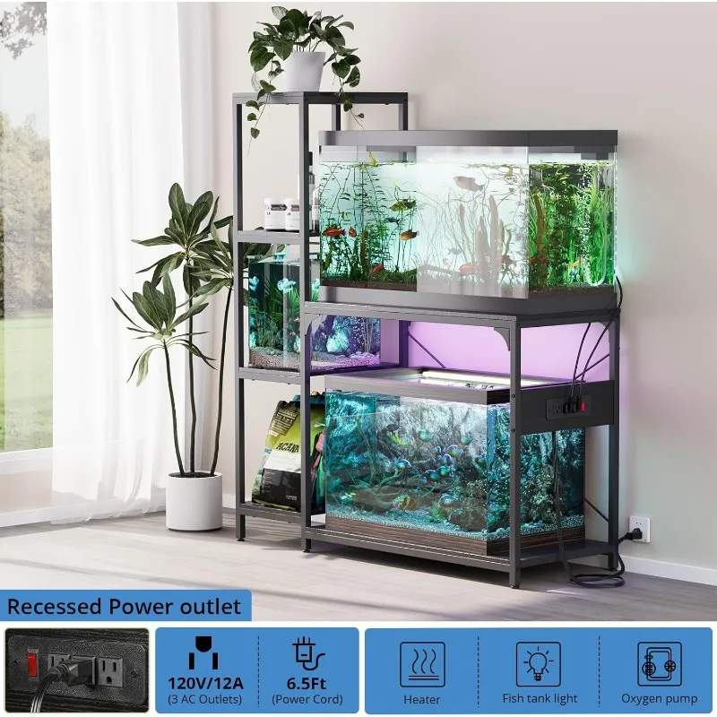 - Useful Power Outlets: The 29 gallon fish tank stand comes integrated with 3 AC power outlets, which provides convenience for heater rods, filters, LED lights, and other devices, avoiding cluttered wires, and simplifying your fish tank management