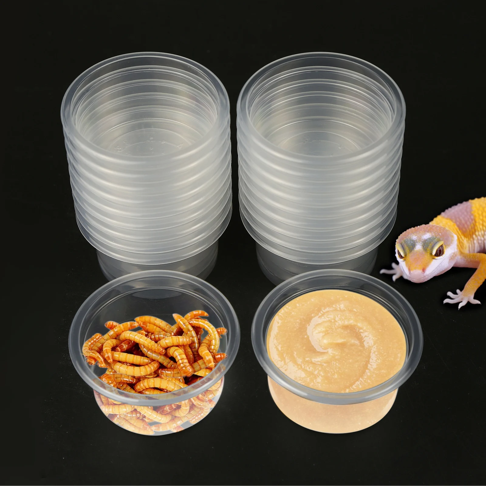 20pcs, Plastic Gecko Food and Water Feeding Cup, Reptile Feeding Bowl Replacement Bowl, Suitable for Lizards and Other Small Pet