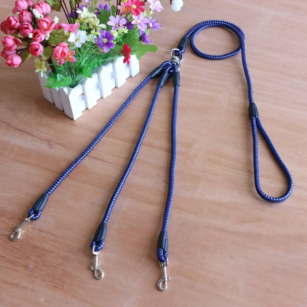 3 Way Couplers Pet Walking Lead 55" Long Nylon Braided Rope Dog Leash For 3 Dogs small dog harness