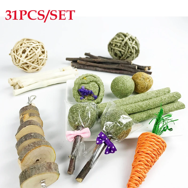 31/14/9/7pcs Guinea Pig Rabbit Chew Toys Tooth Cleaning Toy for Bunny Hamster Molar Toys for Teeth Health Rabbit Accessories