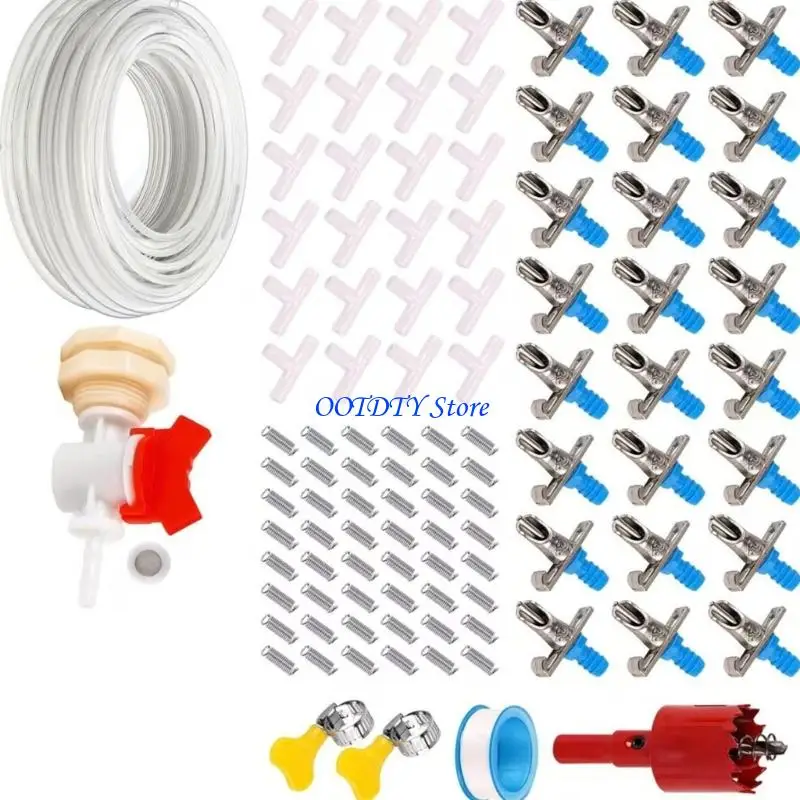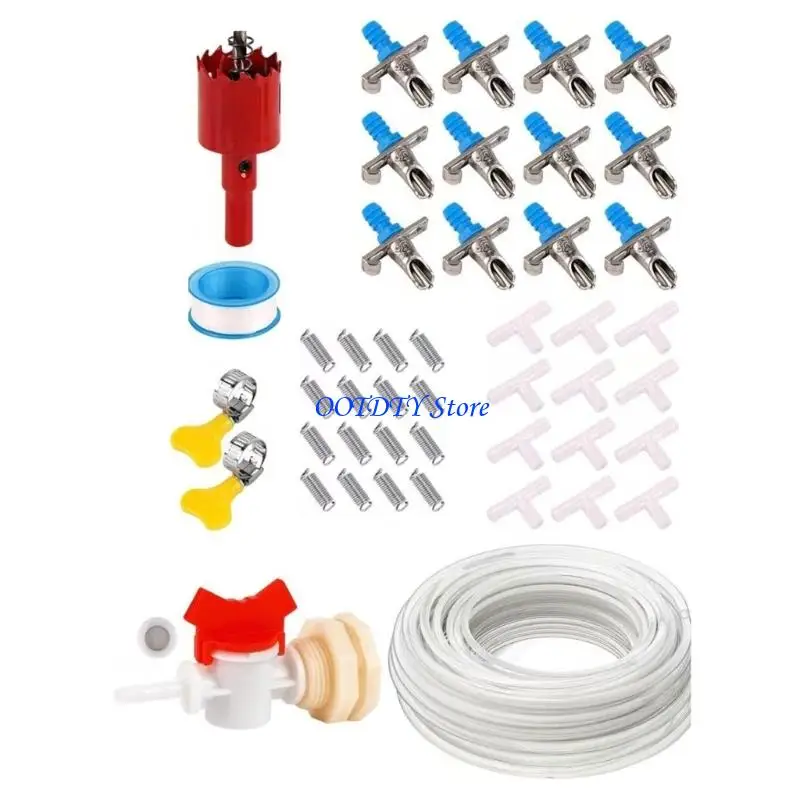 Constructed with rusts resistant galvanized component and flexible tube, the set includes hole sawing, hose clamps, and bucket joints for secure, customizable installation in various cage setups.