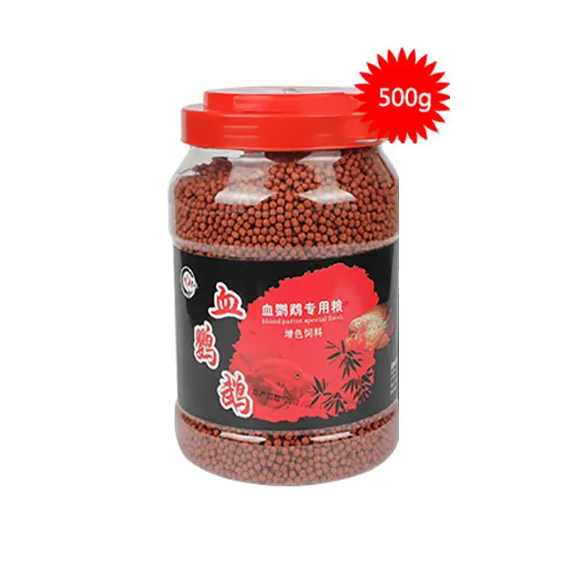 500g/bottle Blood Parrot Fish Food Float On Water Intense Red Enhancing Fast Coloring Snapper Fish Food Tropical Feed Supplies