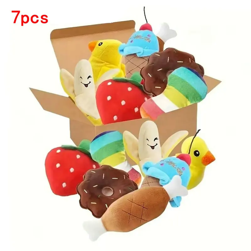 7/10 pcs set of puppy sound toys, loose plush pet chewing, plush fruit snacks and vegetable puppy toys, suitable for cute playm