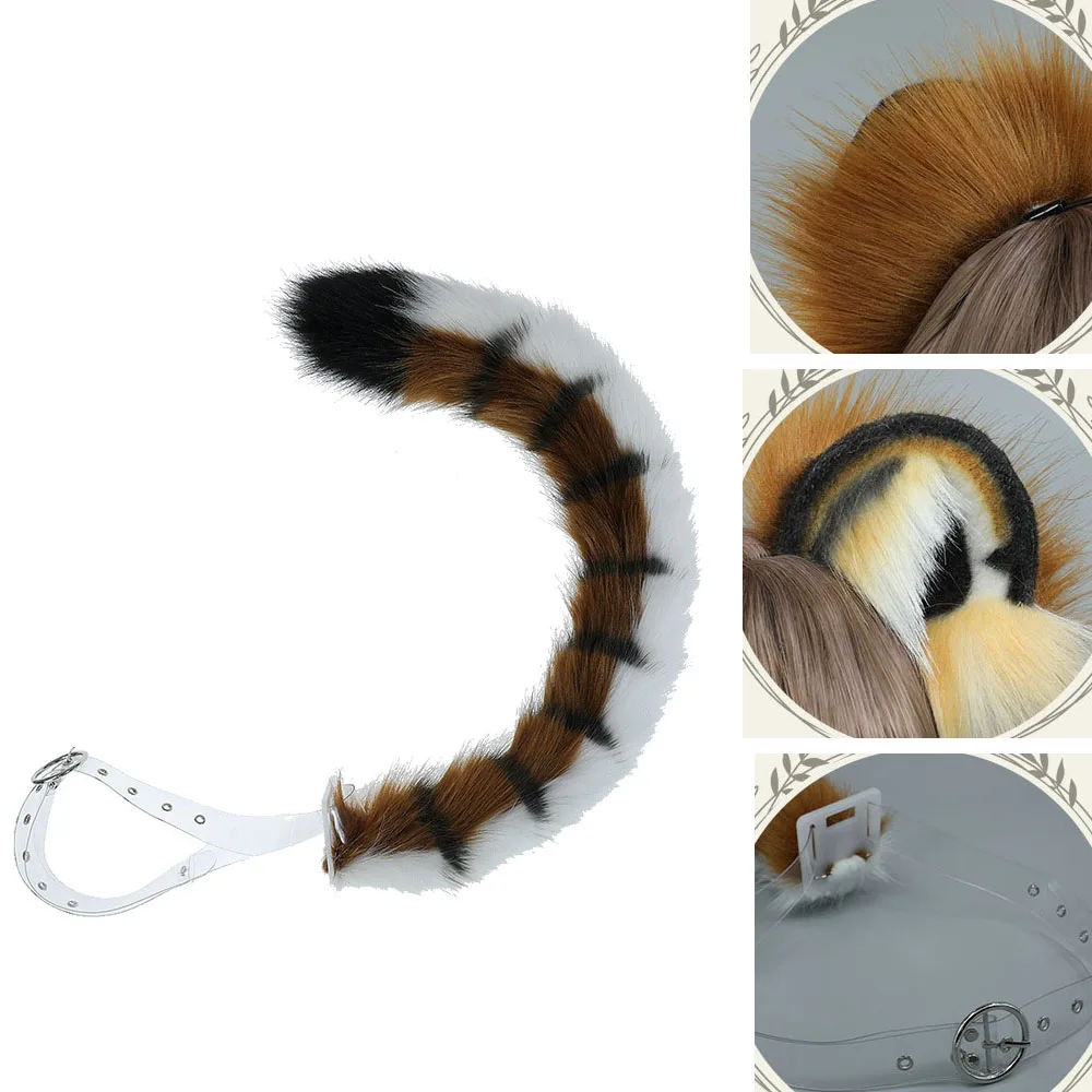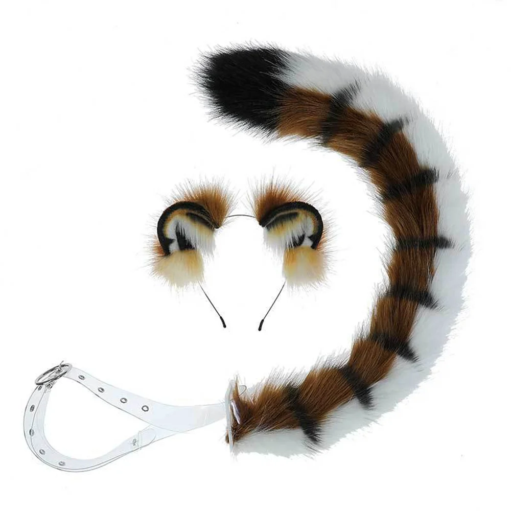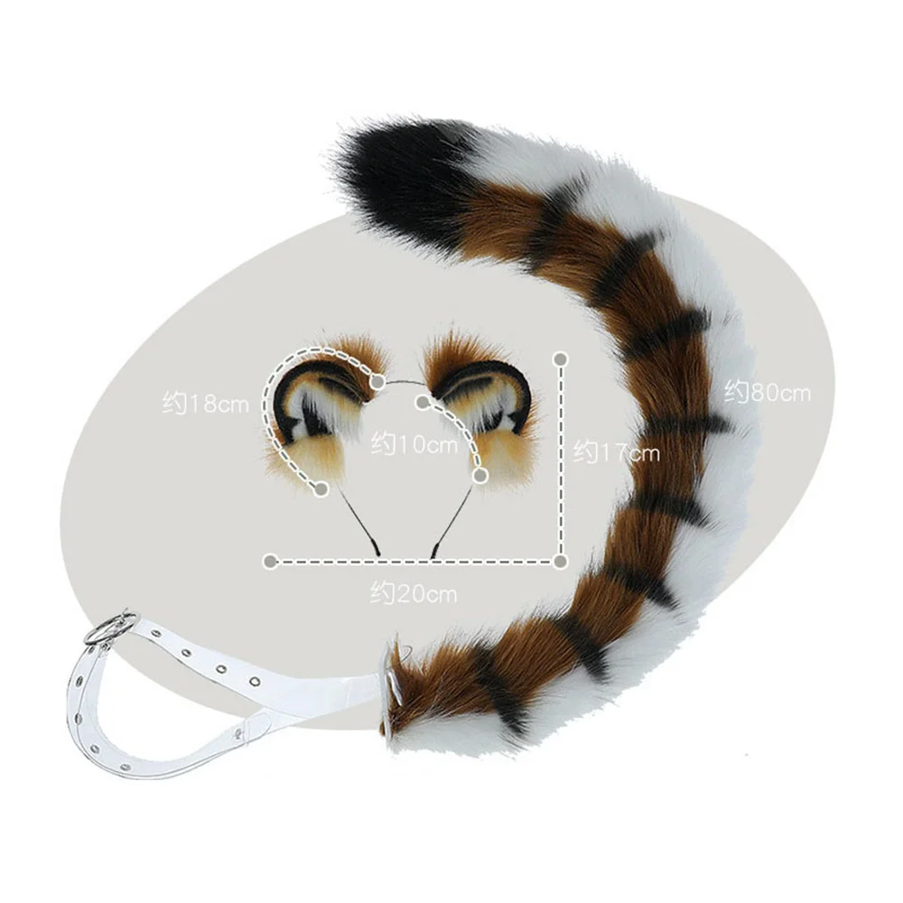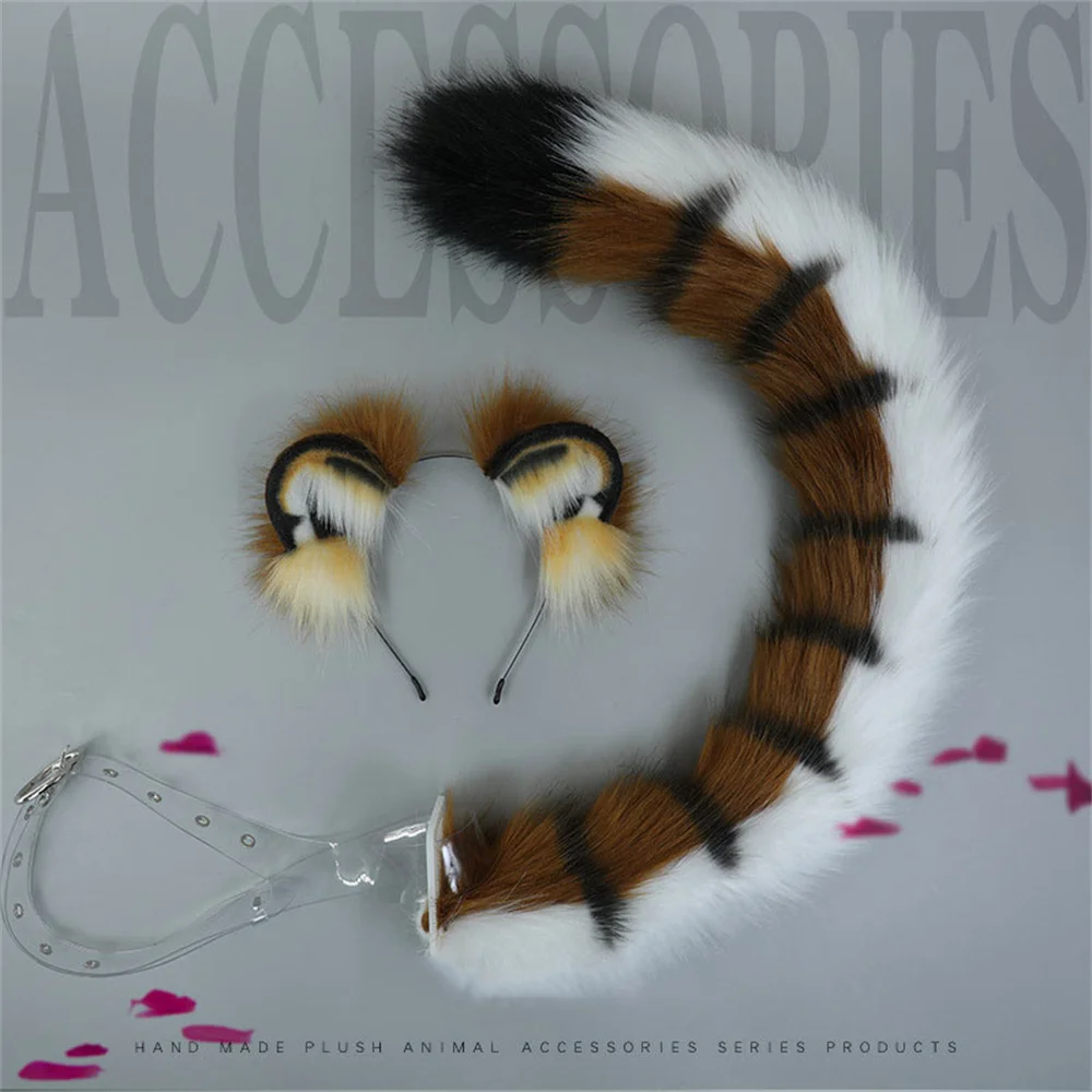 80CM Anime Animal Tail Cosplay Costumes Props Tiger Plush Tails Cute Ear Headband Role Play Halloween Accessories Tiger Tail
