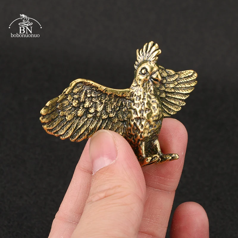 Antique Brass Parrot Small Statue Ornament Cute Animal Bird Figurines Miniatures Decorations Crafts Home Decors Accessories Gift