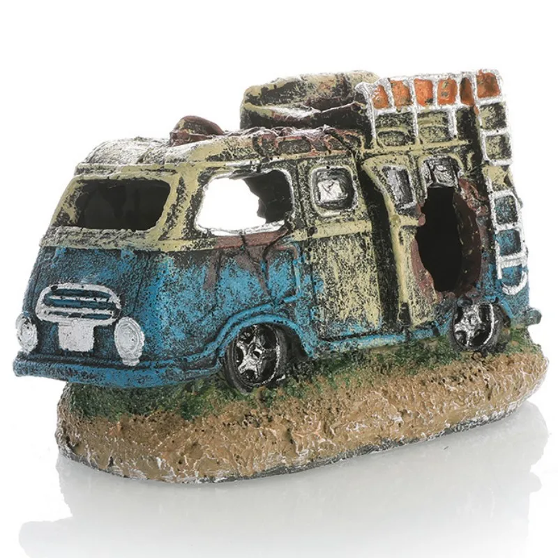 Aquarium Decoration Decorative Ornaments Resin Broken Bus Fish Tank Decoration Simulation Decorative Rocks Fish Tank Accessories