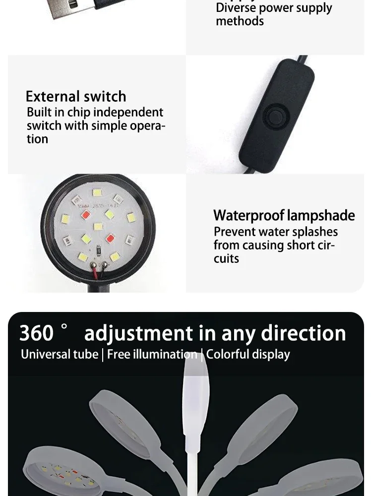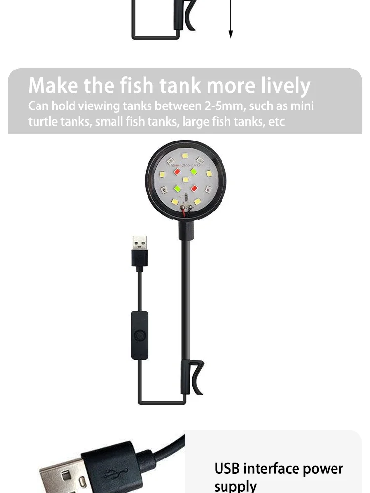 Aquarium Light With Adapter LED Clip On Fish Tank Light, Small Full Spectrum USB Light 360° Rotation Lighting