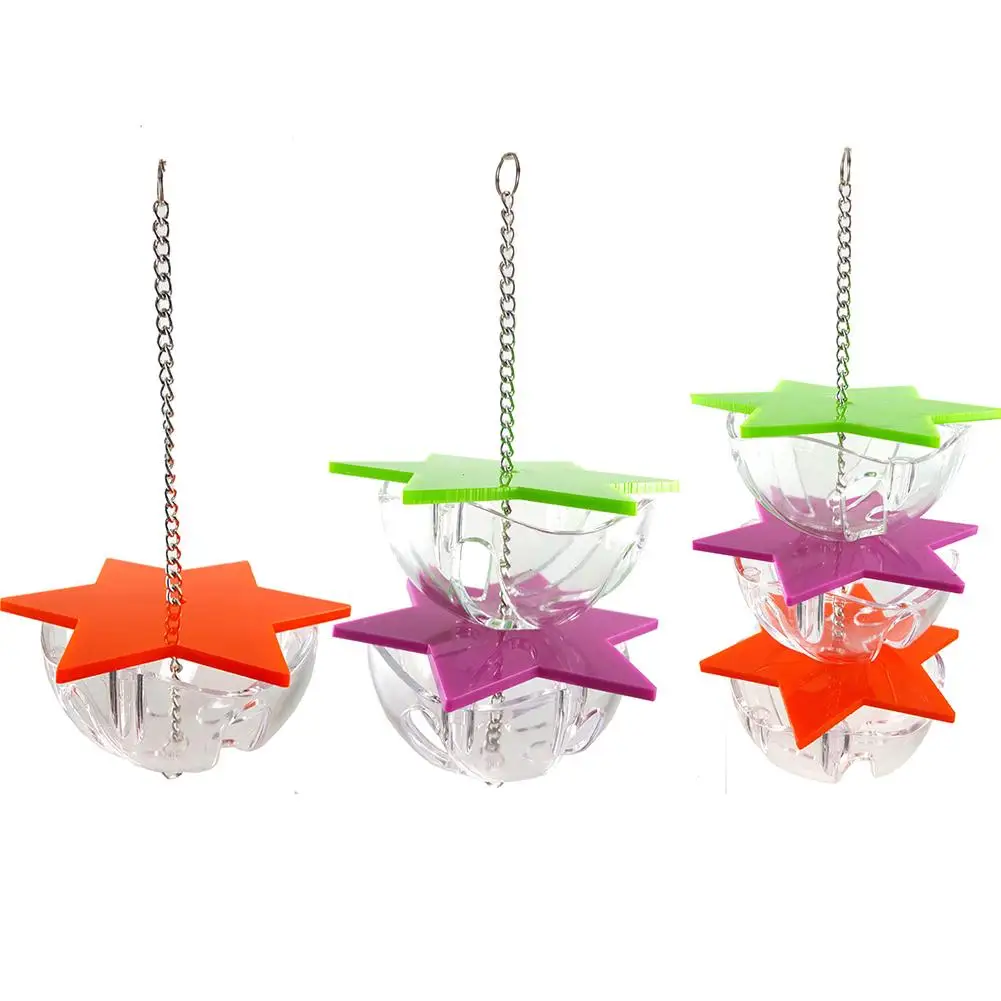 Bird Bite Toys Parrot Hanging Treat Foraging Toy Feeder Acrylic Hexagonal Star Multi-Layer Bird Food Box Birdcage Accessories