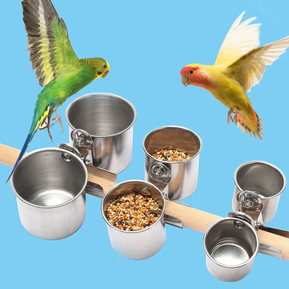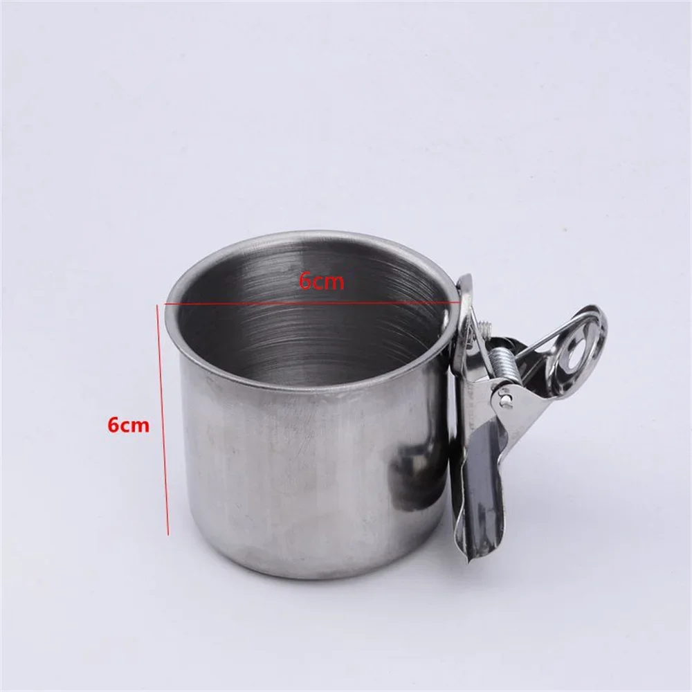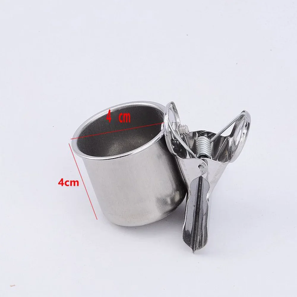 Bird Feeder Cup with Clip Stainless Steel Double Cups Parrot Feeding Food Water Bowl Bird Cage Feeder Accessories Pet Supplies