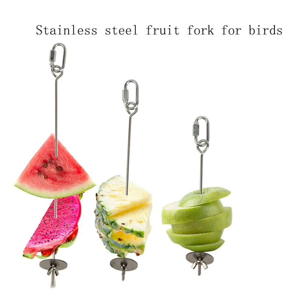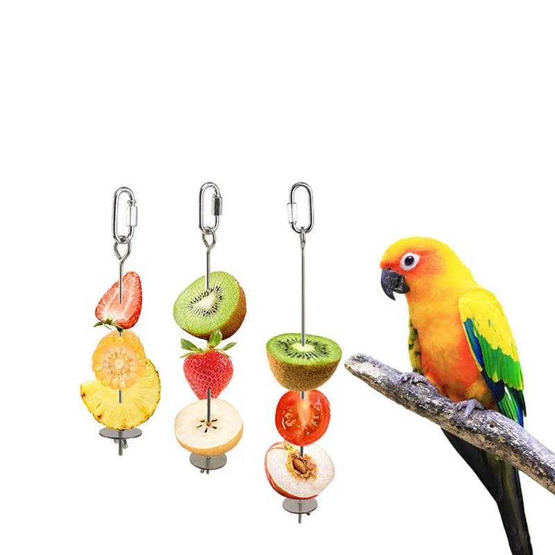 Bird Food Holder Support Stainless Steel Parrot Fruit Vegetable Feeder Stick Spear Meat Skewer Foraging Toys