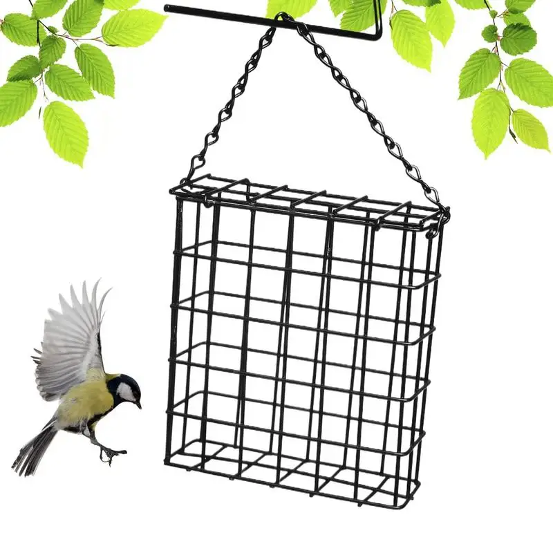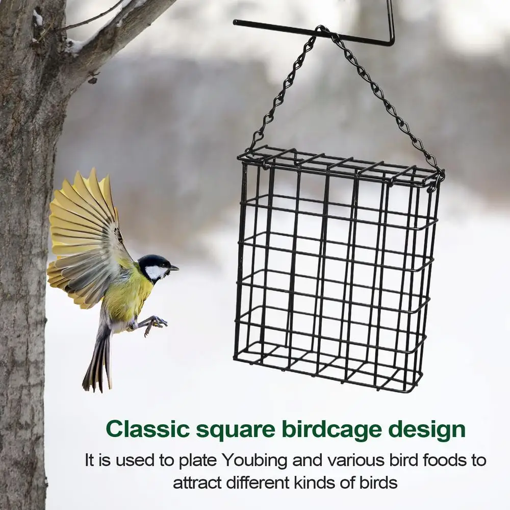 Black Square Bread Block Bird Feeder Outdoor Bird Food Device Metal Wire Suet Cage Feeder Bird Cage Suet Feeder