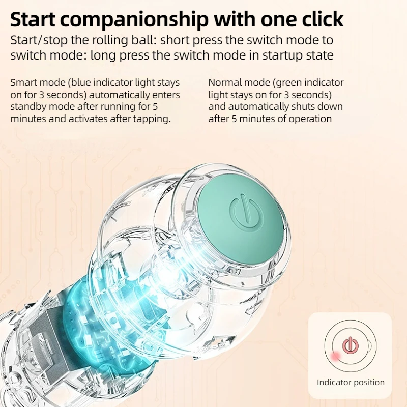 3. Intelligent mode (blue indicator light on for 3 seconds), automatically enters standby mode after running for 3 minutes, reactivates the ball after tapping,