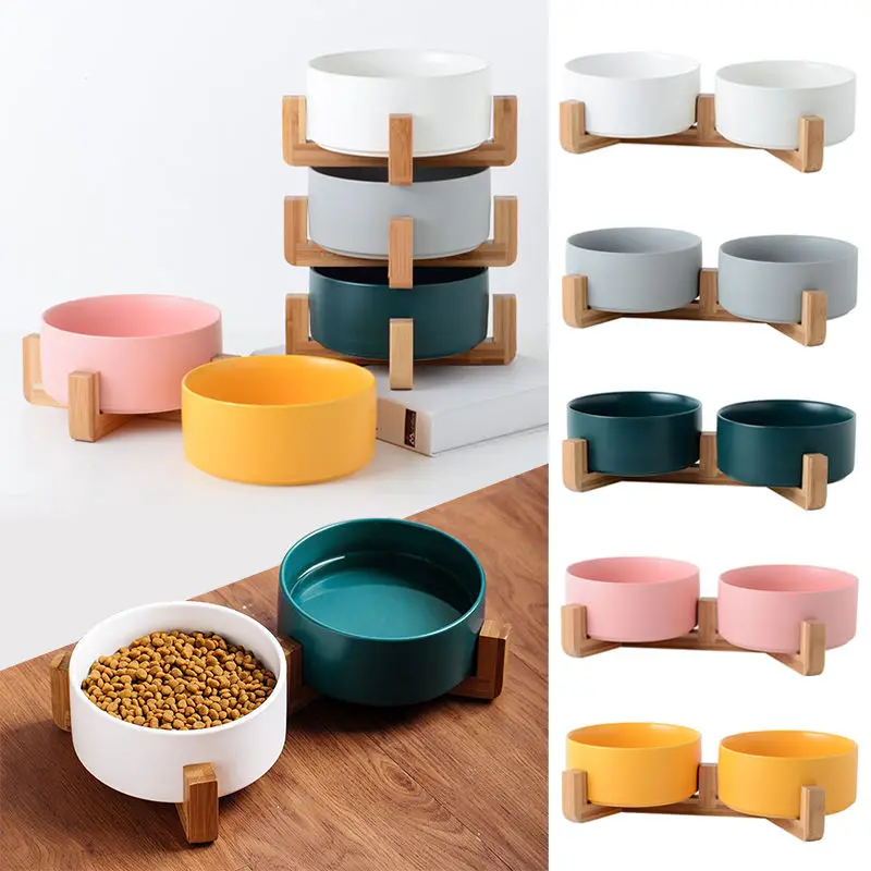 Ceramic Pet Bowl Cat Dogs Feeding Matted Elevated Dog Bowl Double Bowls Pet Food Water Feeder Wholesale Pet Manufacturer