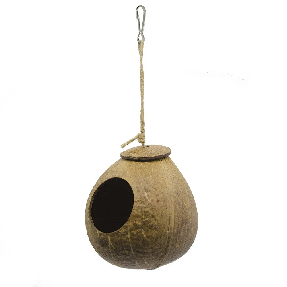 Coconut Bird Nest Hut With Ladder Hanging,Hanging Coconut Bird House Parrot Hideout Bird Cage For Lovebird Pigeons Pet Supplies