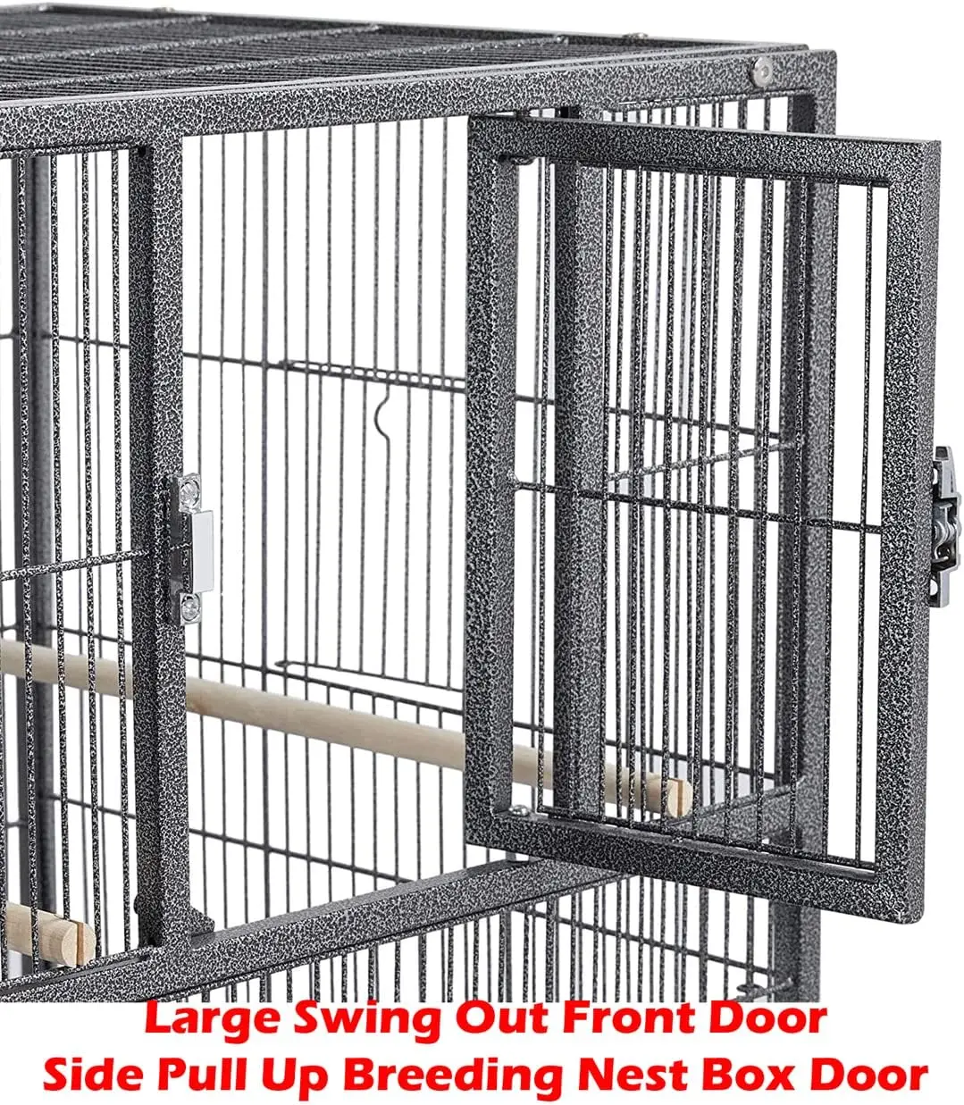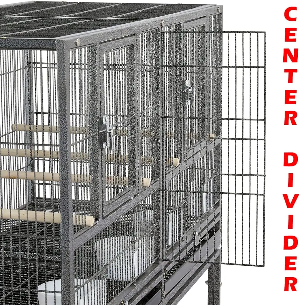 - Center Divided Breeding Cage With Two Front Swivel Out Door and Safety Lock Set. Side Breeding Nest Doors Included.