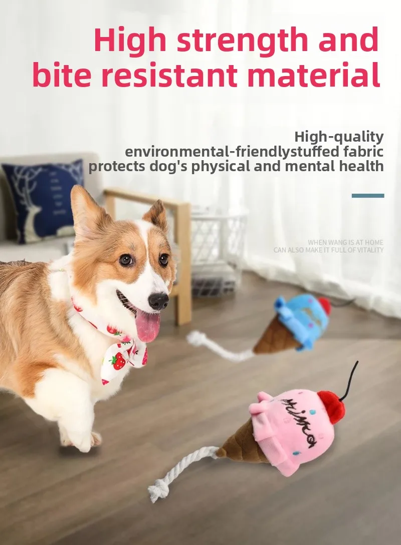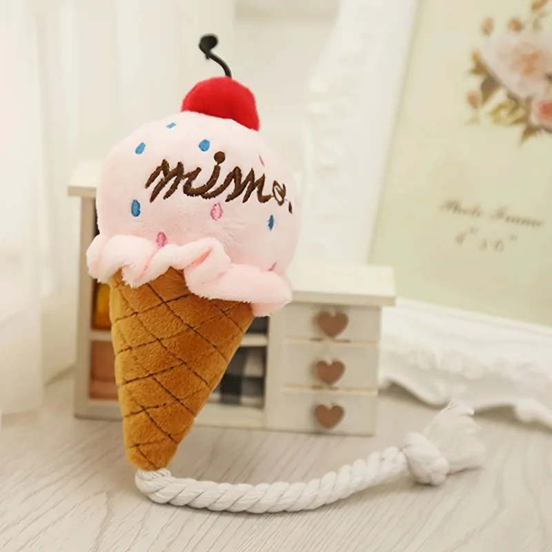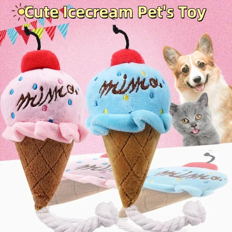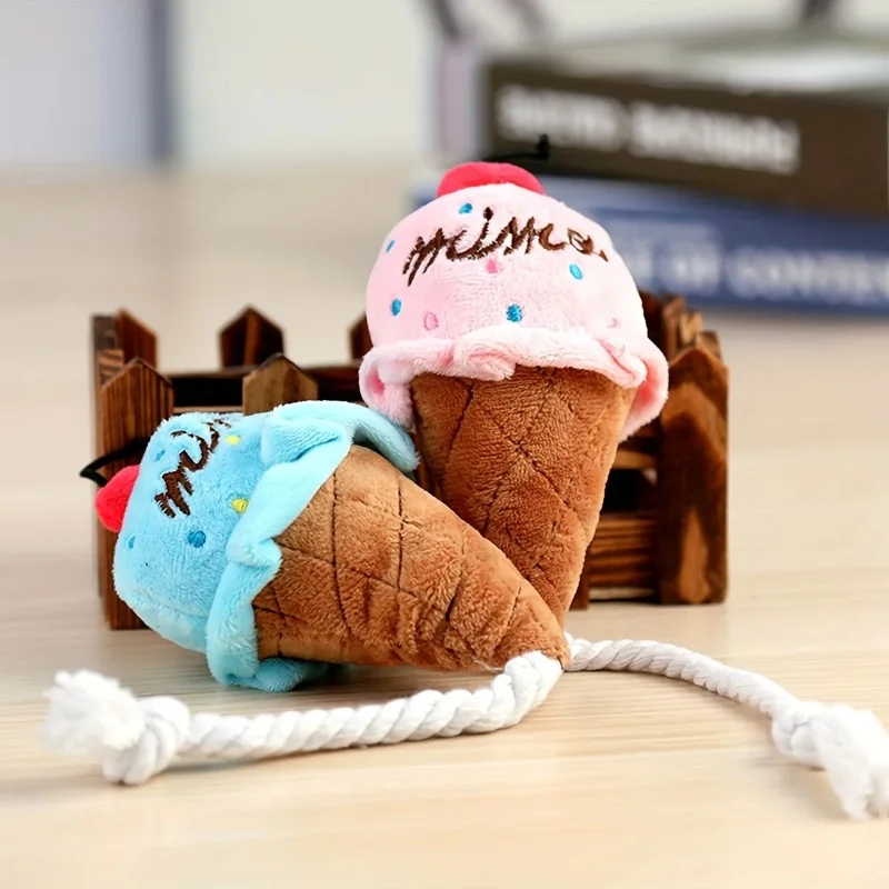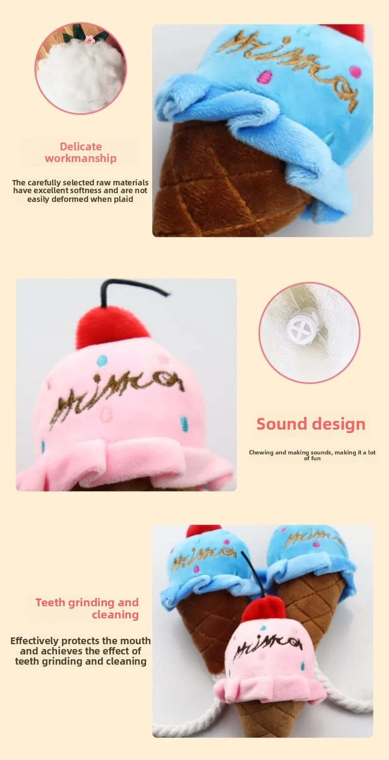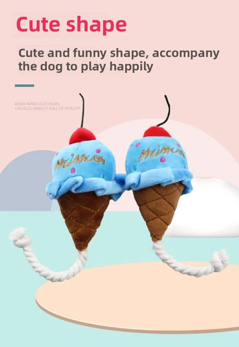 Cute Ice cream Shape Toy Puppy Dog Plush Squeaky Toy For Small Medium Dogs for Chewers Pet Cat Products Puppy Accessories