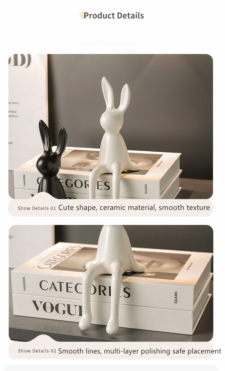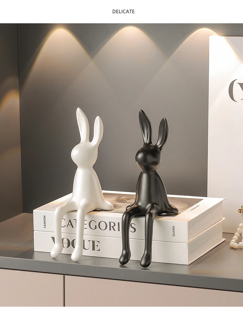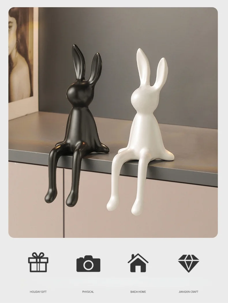 Cute Rabbit Sitting Position Figurines Ceramics Desktop Decoration Crafts Living Room TV Stand Bookcase Warm Home Decorations