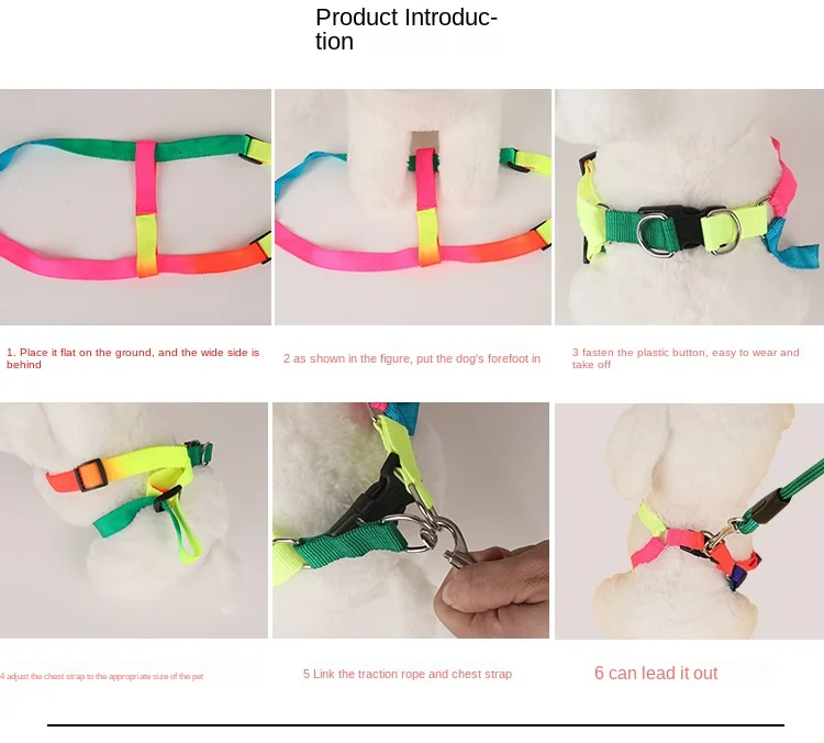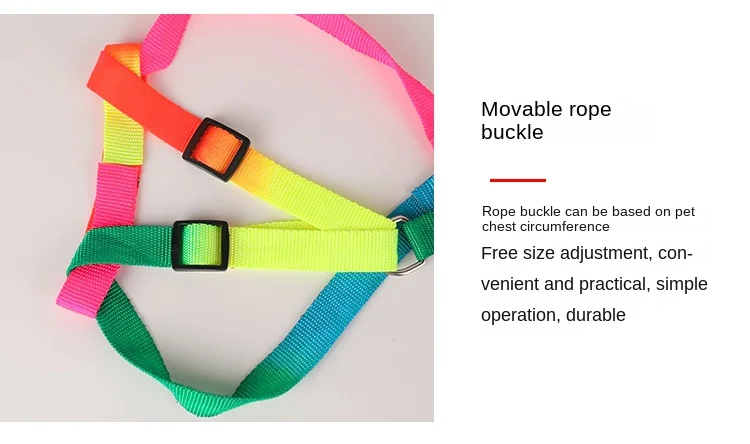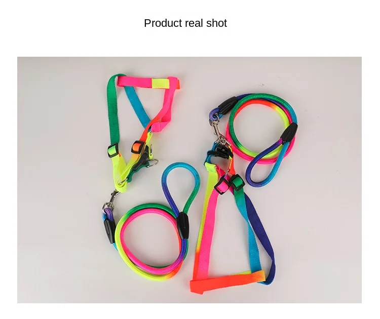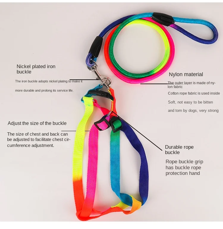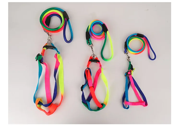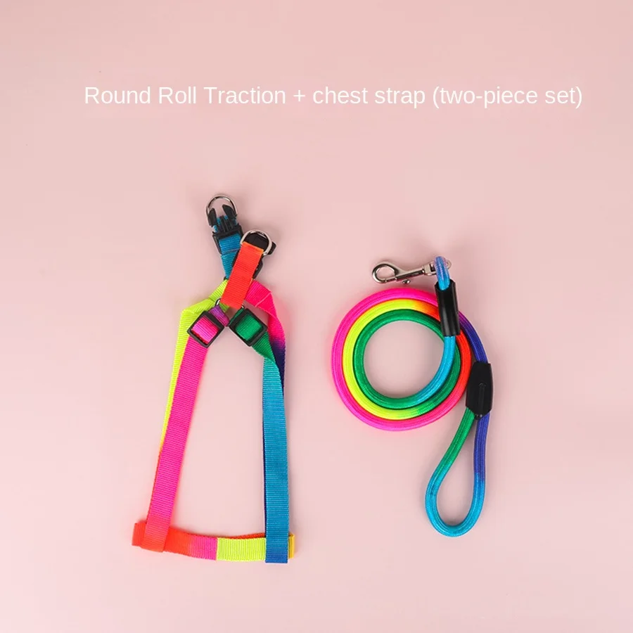 Dog Pet Leash + Harness Two-Piece Set Cat Leash Colorful Pet Harness Round Rainbow Color Cat Leash Dog Chain