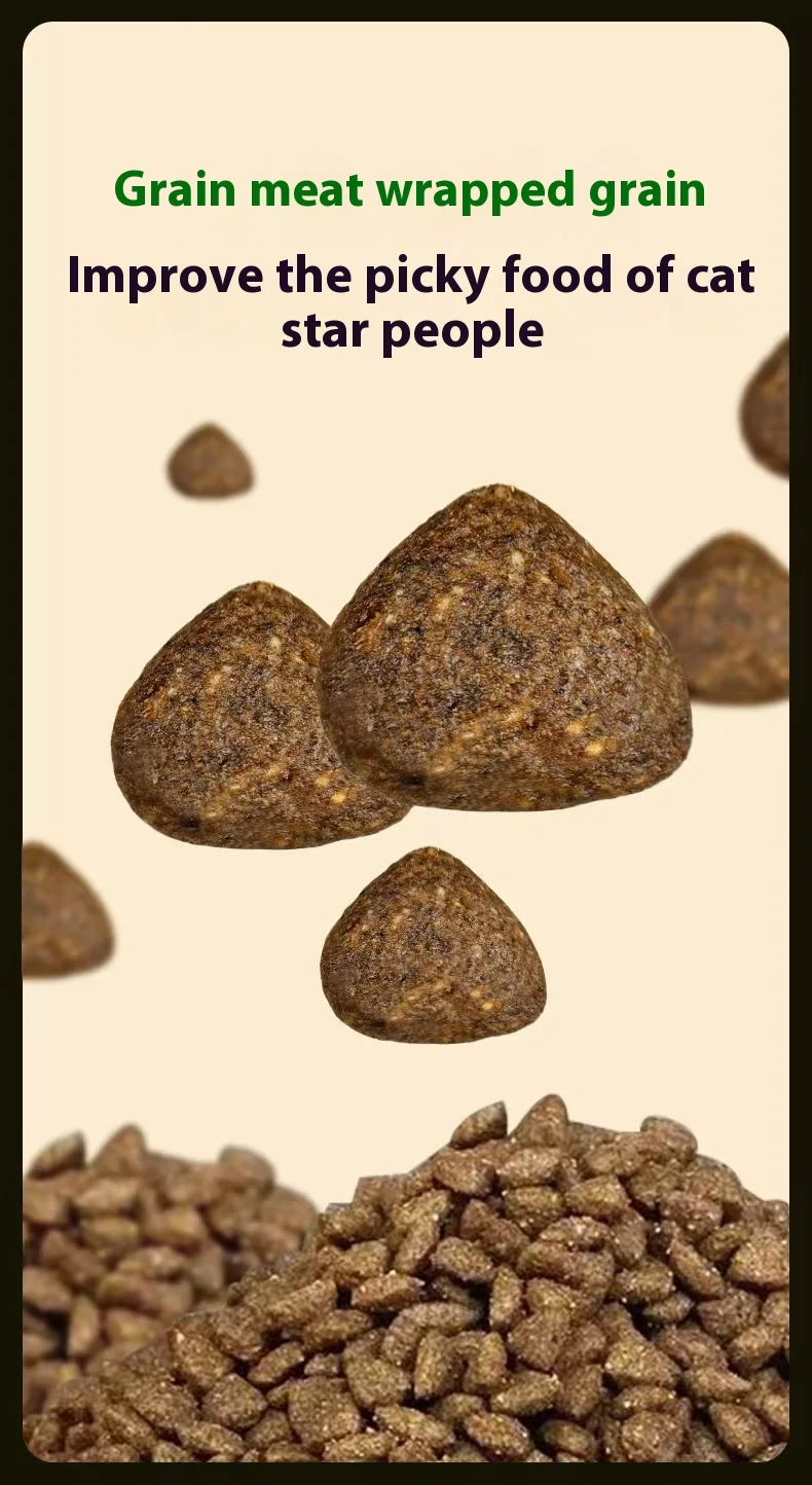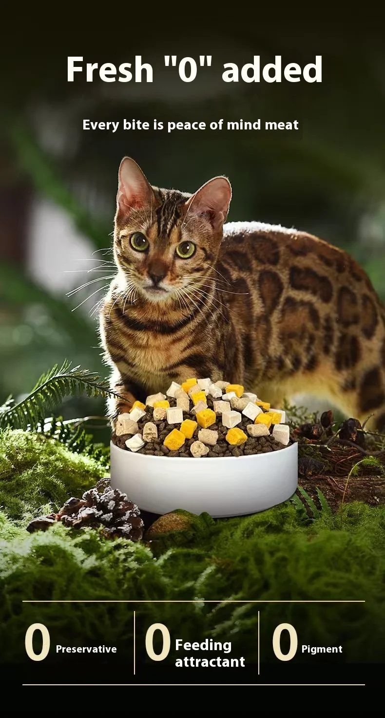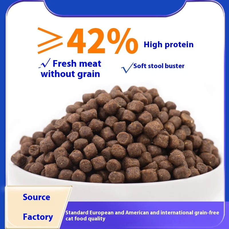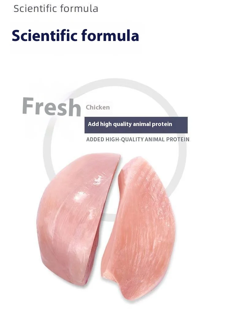 Economical full-grade cat food for weight gain and cheek development; high nutrition and protein upgraded with fresh meat for ad