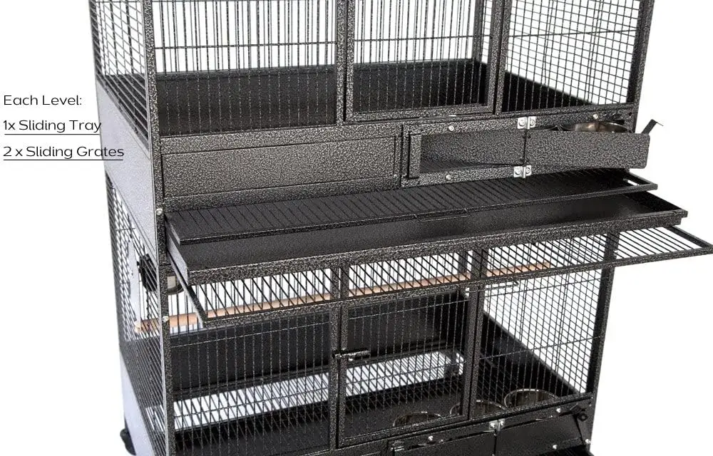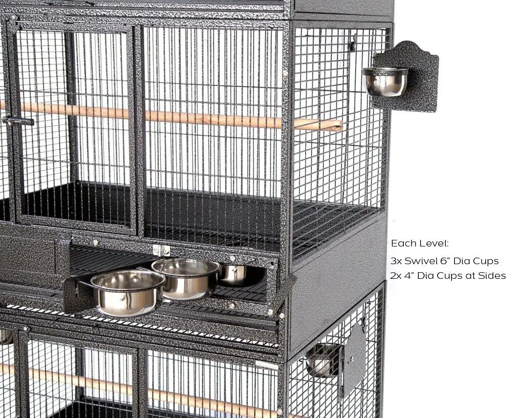 - 【Extra Spacious and Durable Wrought Iron】 Triple Stackable Parrot Bird Breeding Breeder Cage With Safty Locks Cage; 【Each Cage Dimensions:36W x 24D x 23H inches】 【Overall Cage Dimensions: 36W x 24D x 79H inches】