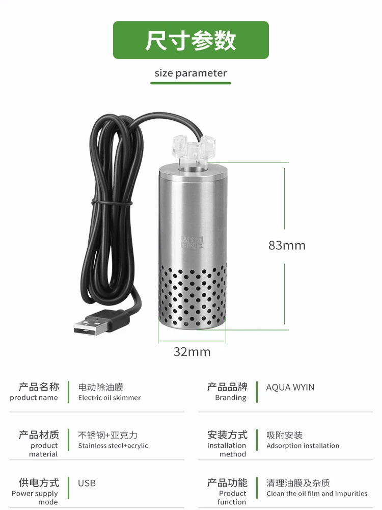 Be the first to review “Fish tank oil removal film stainless steel USB filter self-priming floating head oil film processor Aquarium cleaning products” Cancel reply