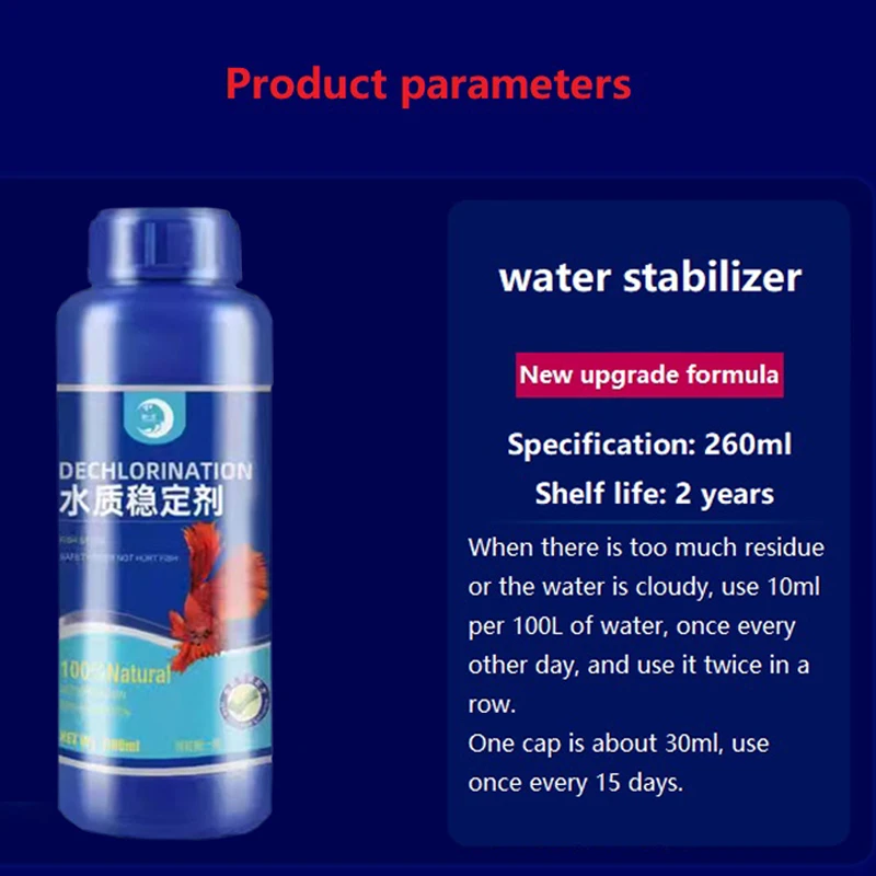 Fish Tank Water Purifier, Tropical Ornamental Fish, Chlorine Removal, Fishbowl, Change Water Stabilizer, 260ml
