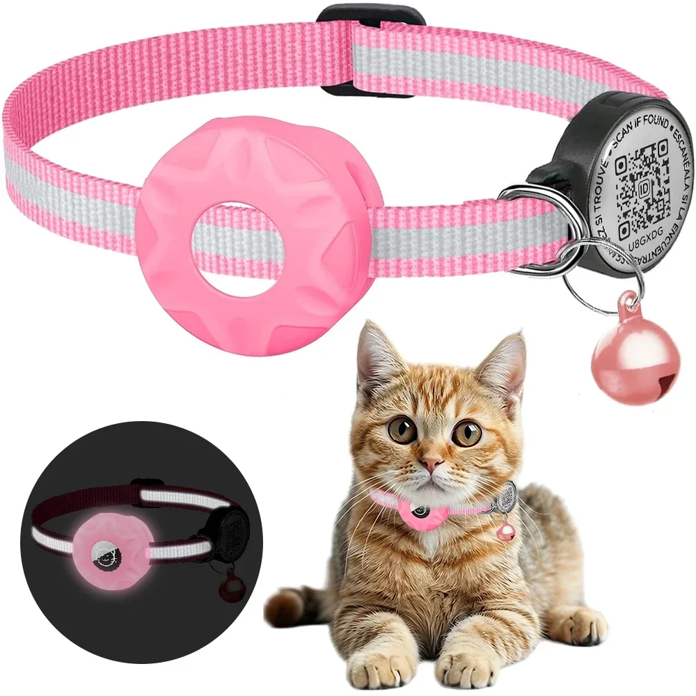 GPS Cat Collar Cats Accessories Cats Airtag Collar with QR ID Pet Tag Reflective Anti-Lost Tracker Air Tag Holder Kitten Collar