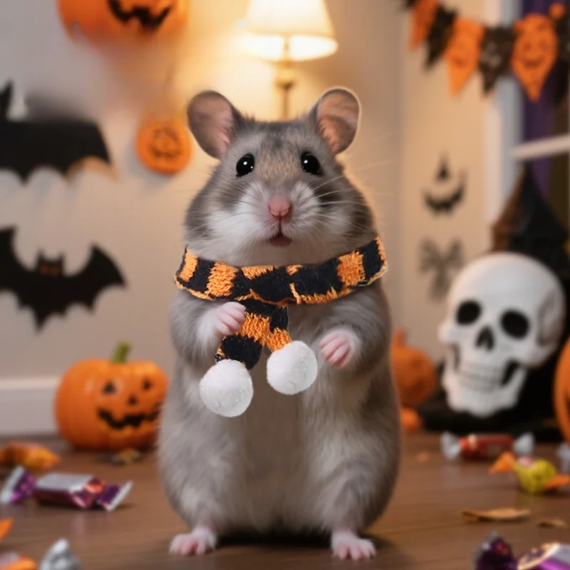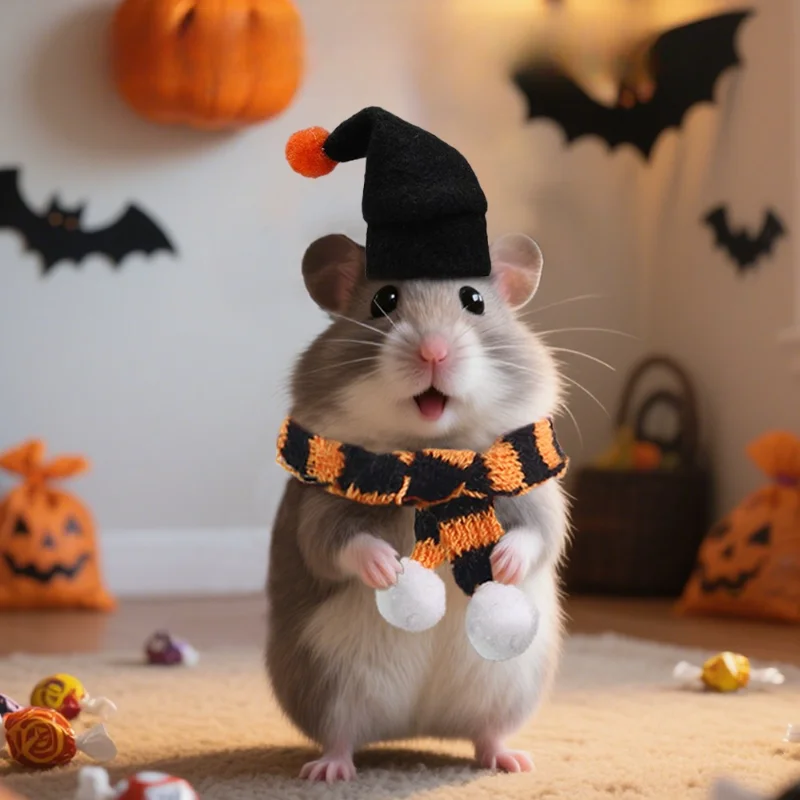 Hamster Hat and Scarf Set Pet Mini Decoration Halloween Small Pet Toy Doll Decoration Supplies Clothes for Hamster 1set