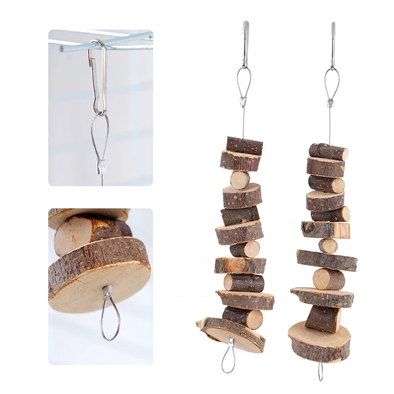 4. Metal Hook: The metal hook can be mounted on a pet cage. Let them enjoy themselves.