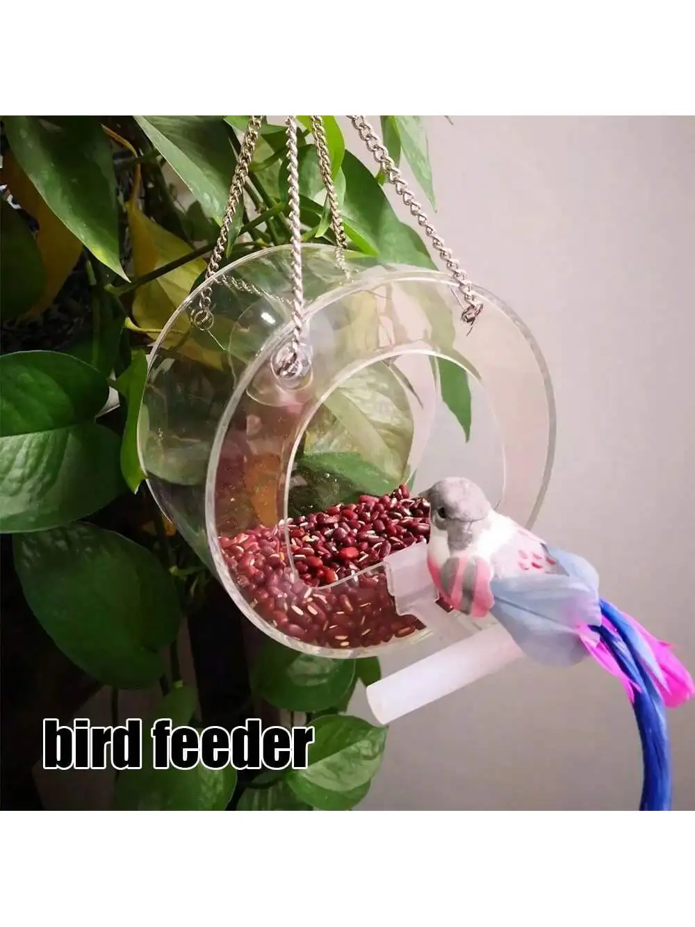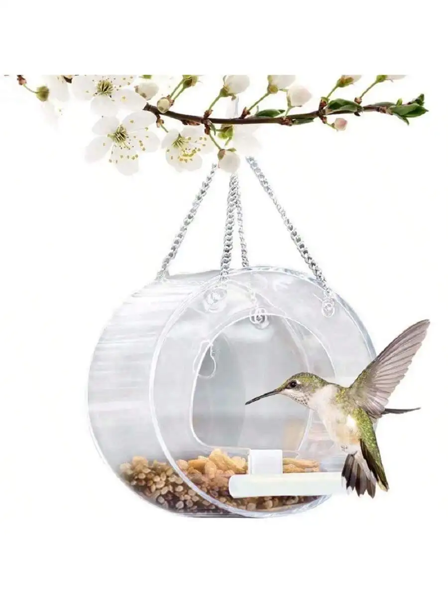 Hanging Window Wild Bird Feeder Clear Round Acrylic Feeding Station Outdoor Parrot Food Container