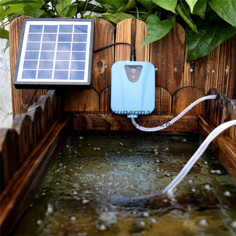 HONGYI 1 piece outdoor aquariums solar powered or DC charging oxygenator air pump O2 compressor with solar panel for fish tank