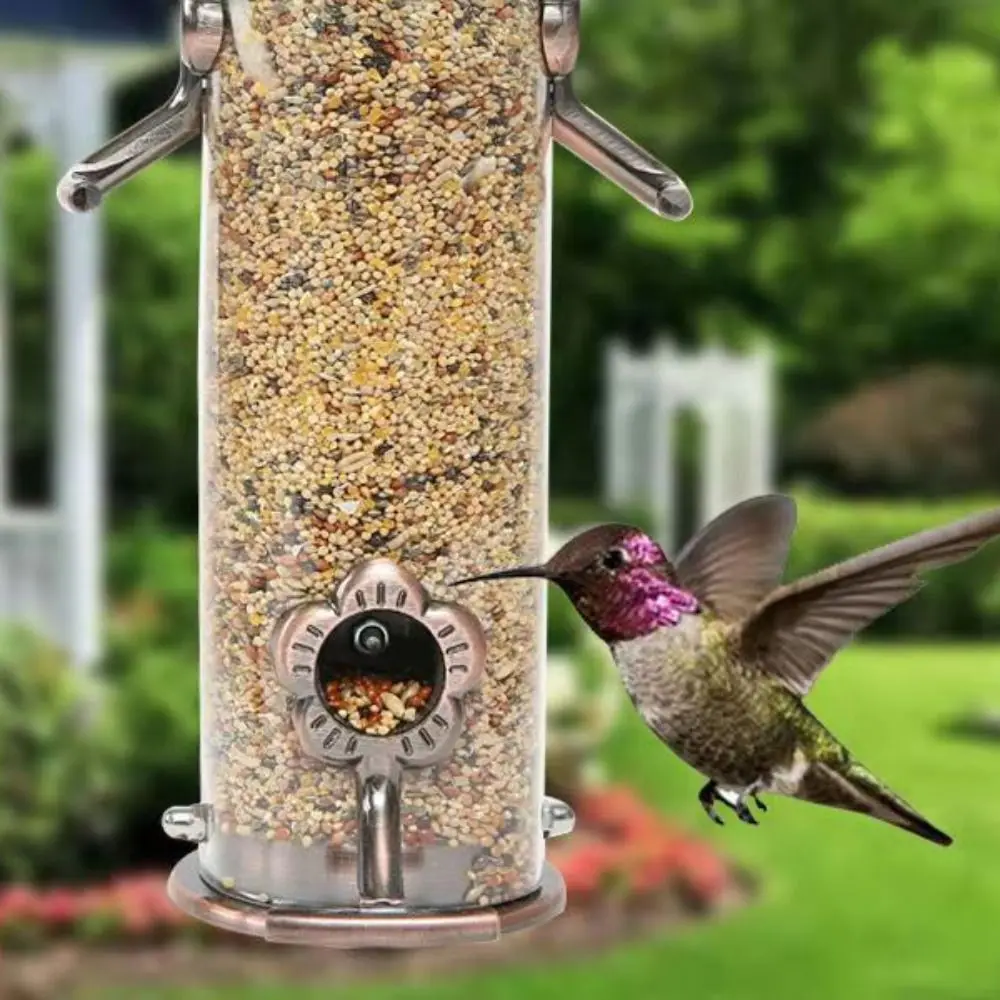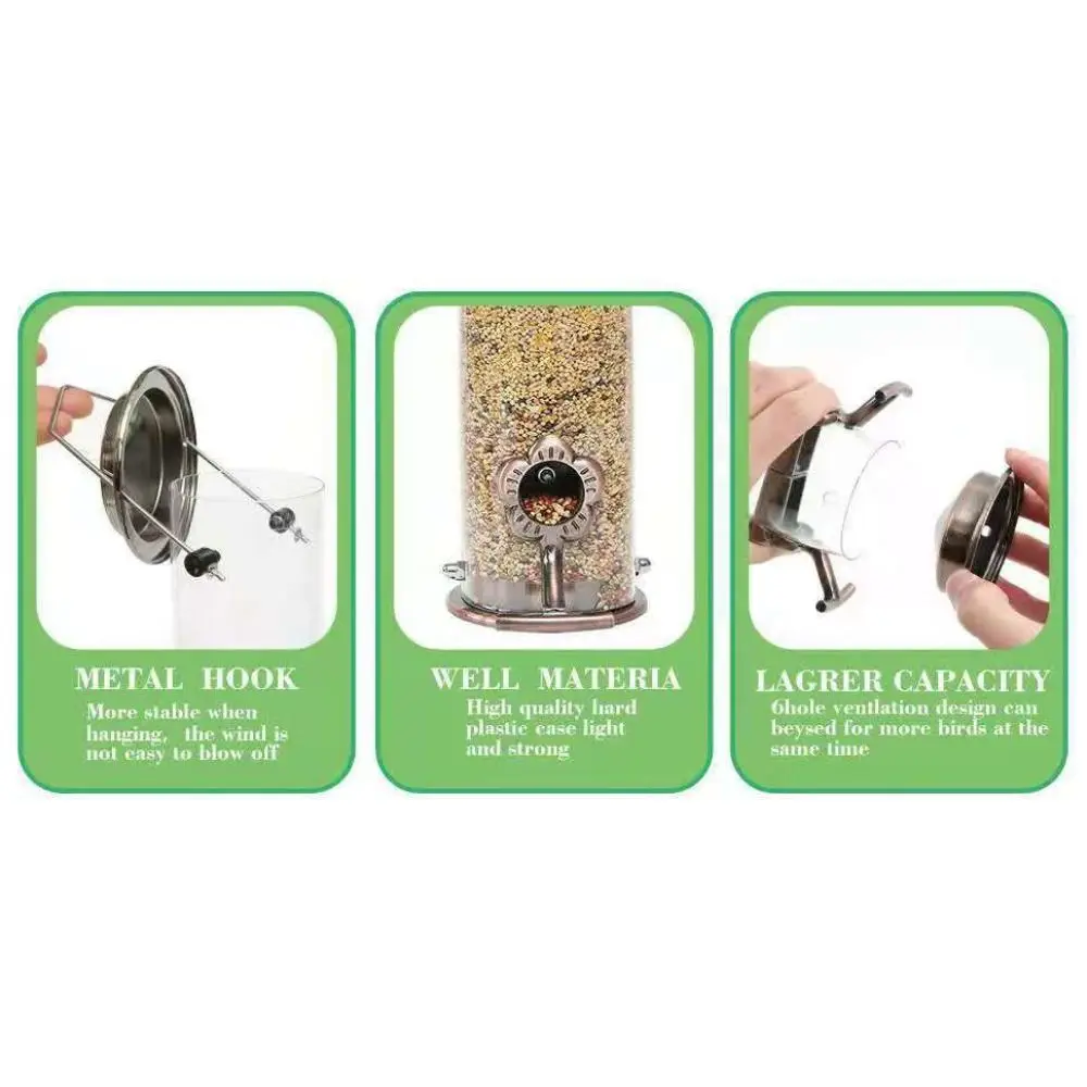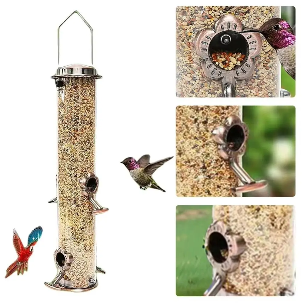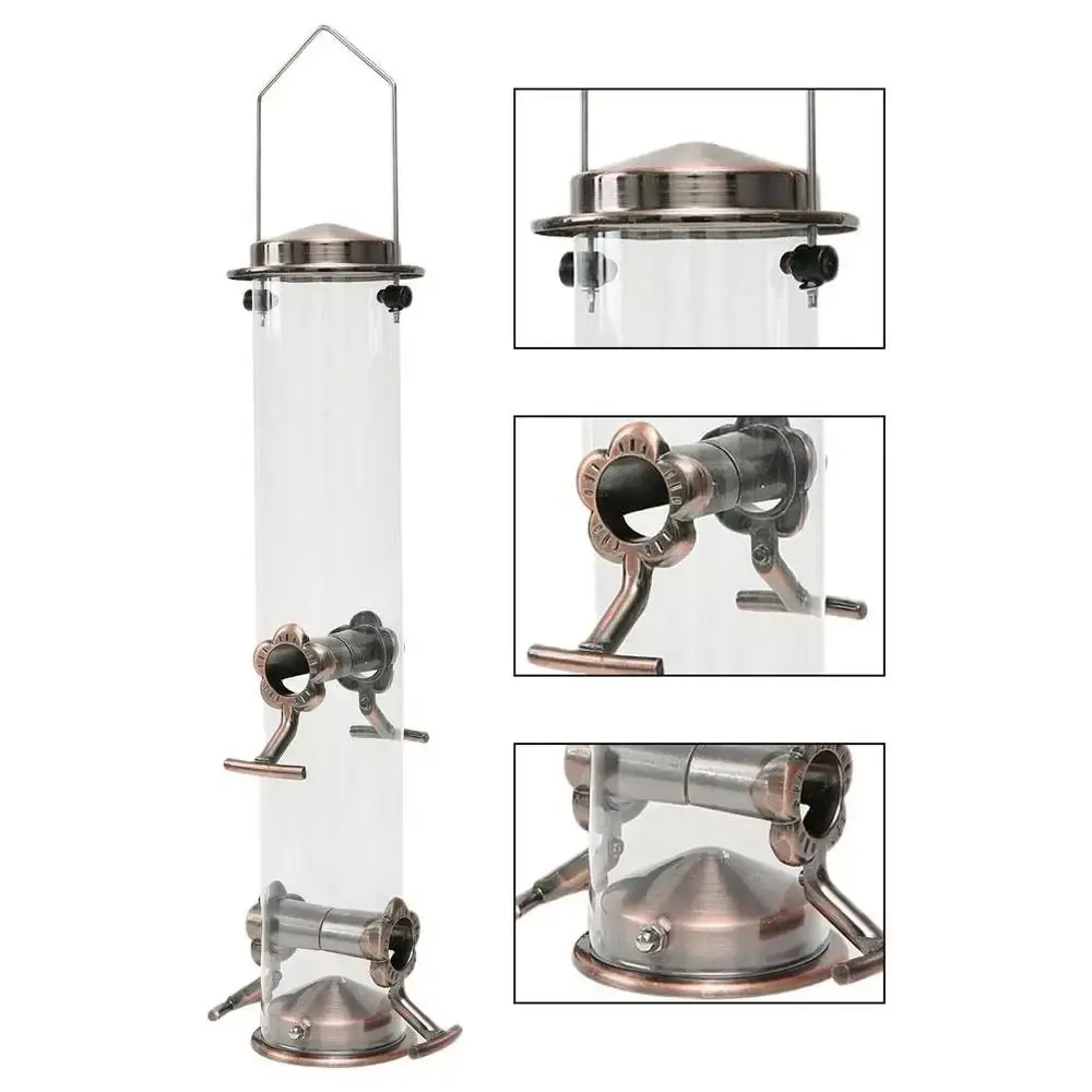 Metal Bird Feeder Automatic Transparent Bird Food Dispenser Waterproof Large Capacity Bird Feeding Bowl Hummingbird