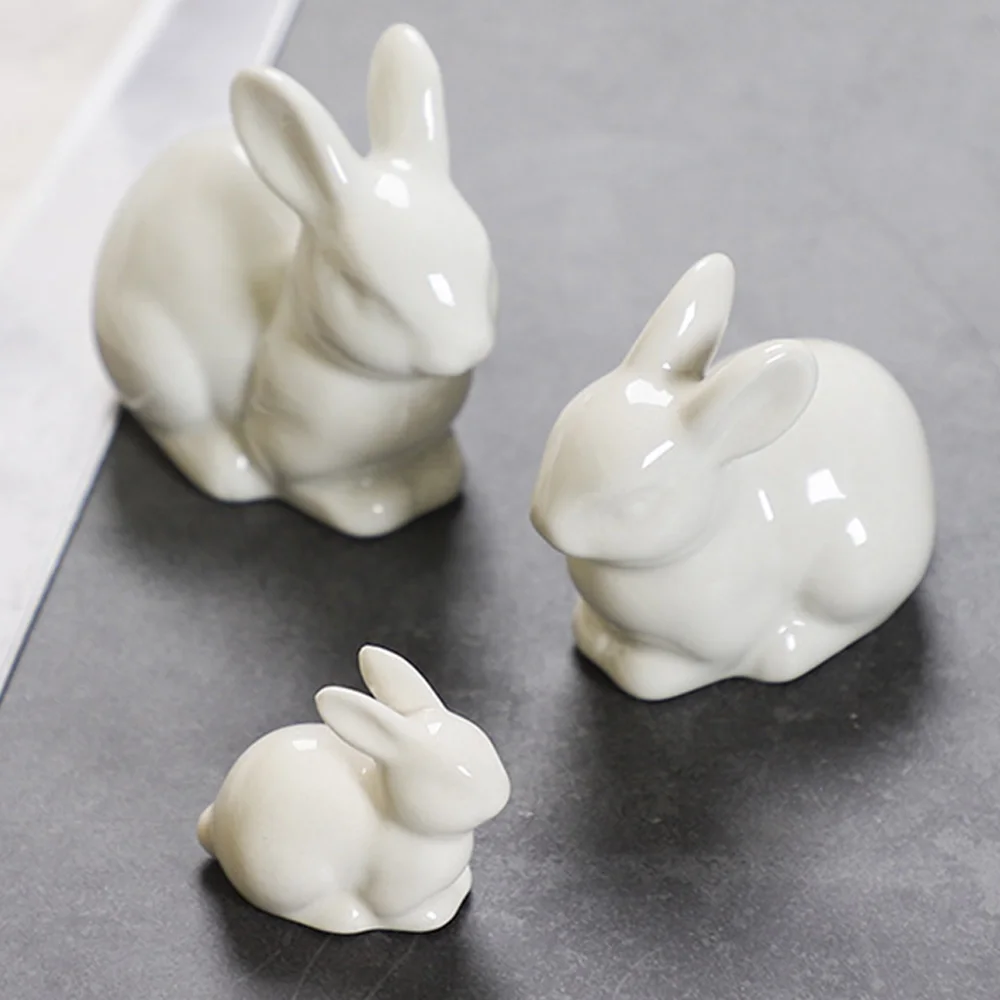 Miniature Ceramic Rabbit Landscape DIY Crafts Accessories for Flat Dormitory Decoration