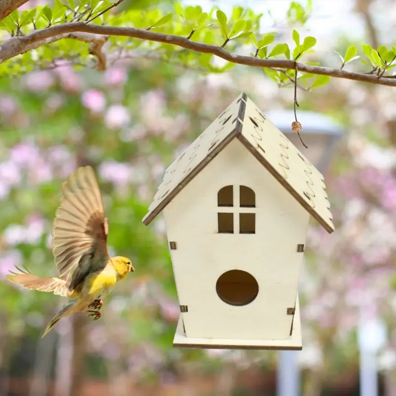 Natural Wooden Bird House Nest for Creative DIY Handmade Crafts Decorative Simulated Box for Bluebird Finch Wren Chickadee