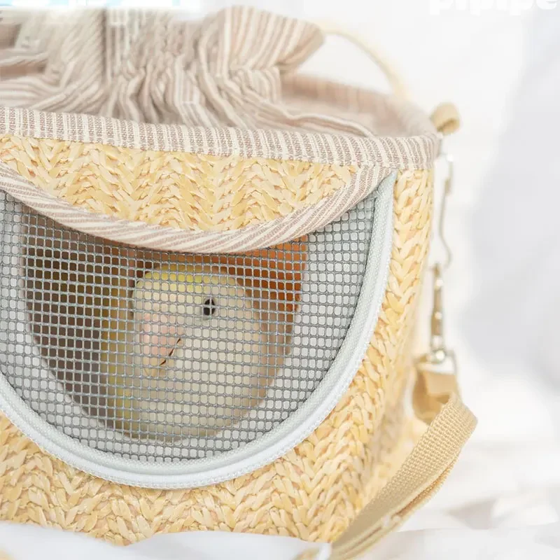 Parrot Cage Go Out with Straw Woven Peony Bird Small Pet Backpack Portable Breathable Outer Cage Bird Supplies Bird Cages