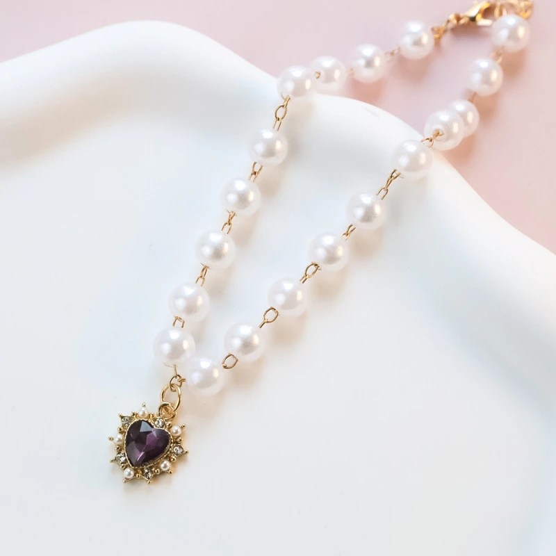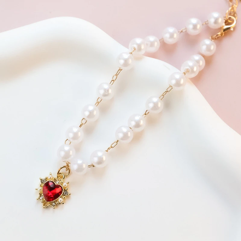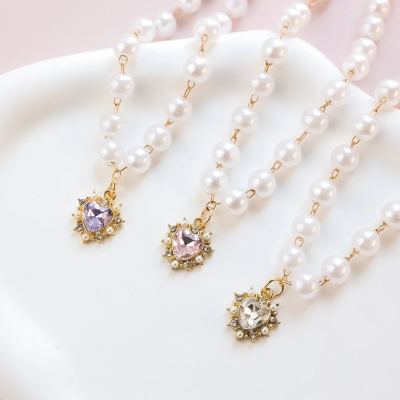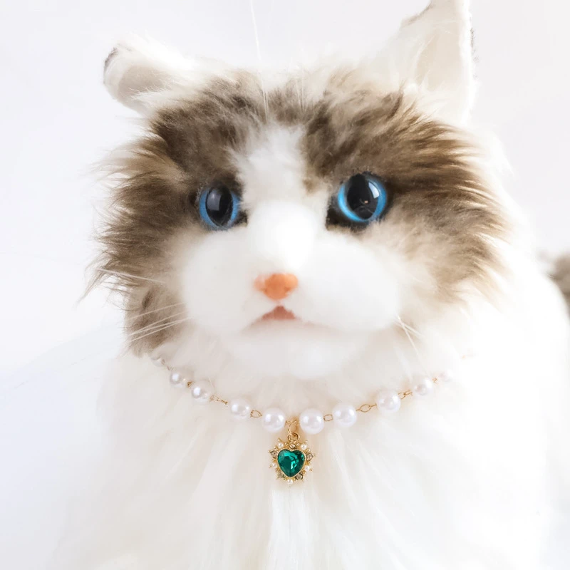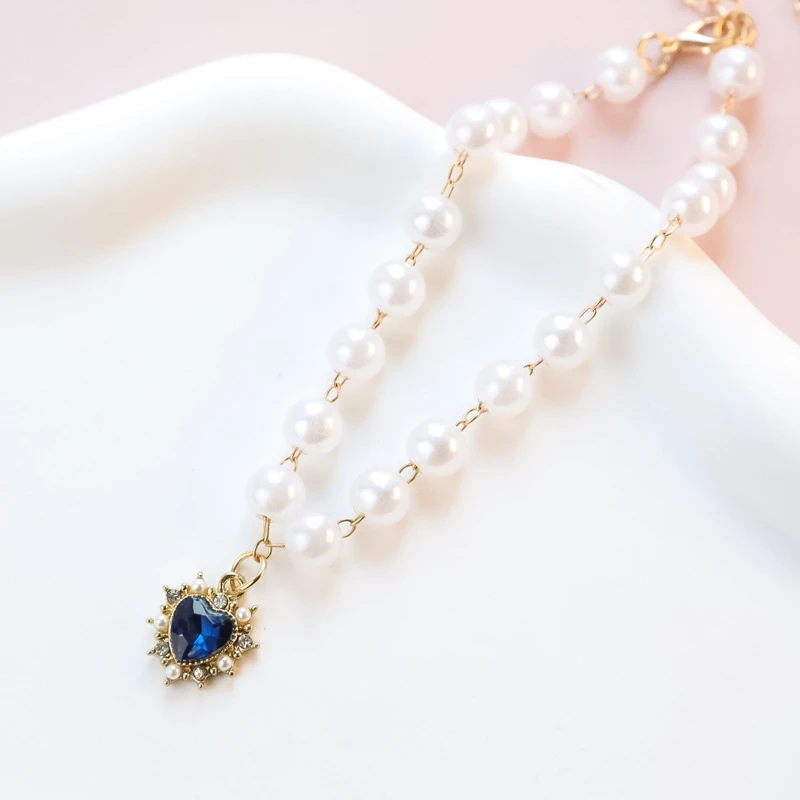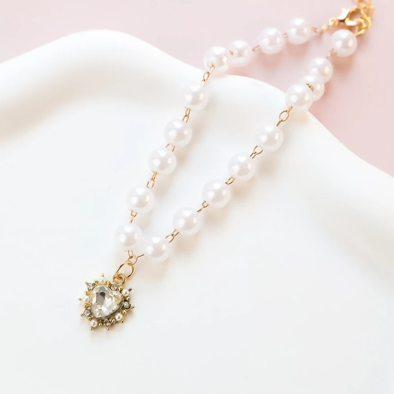 Pearl Chain Accessories for Cats Zircon Heart Pet Products Small Medium Puppy Neck Wear Wedding Birthday Gift Pet Dog Collar