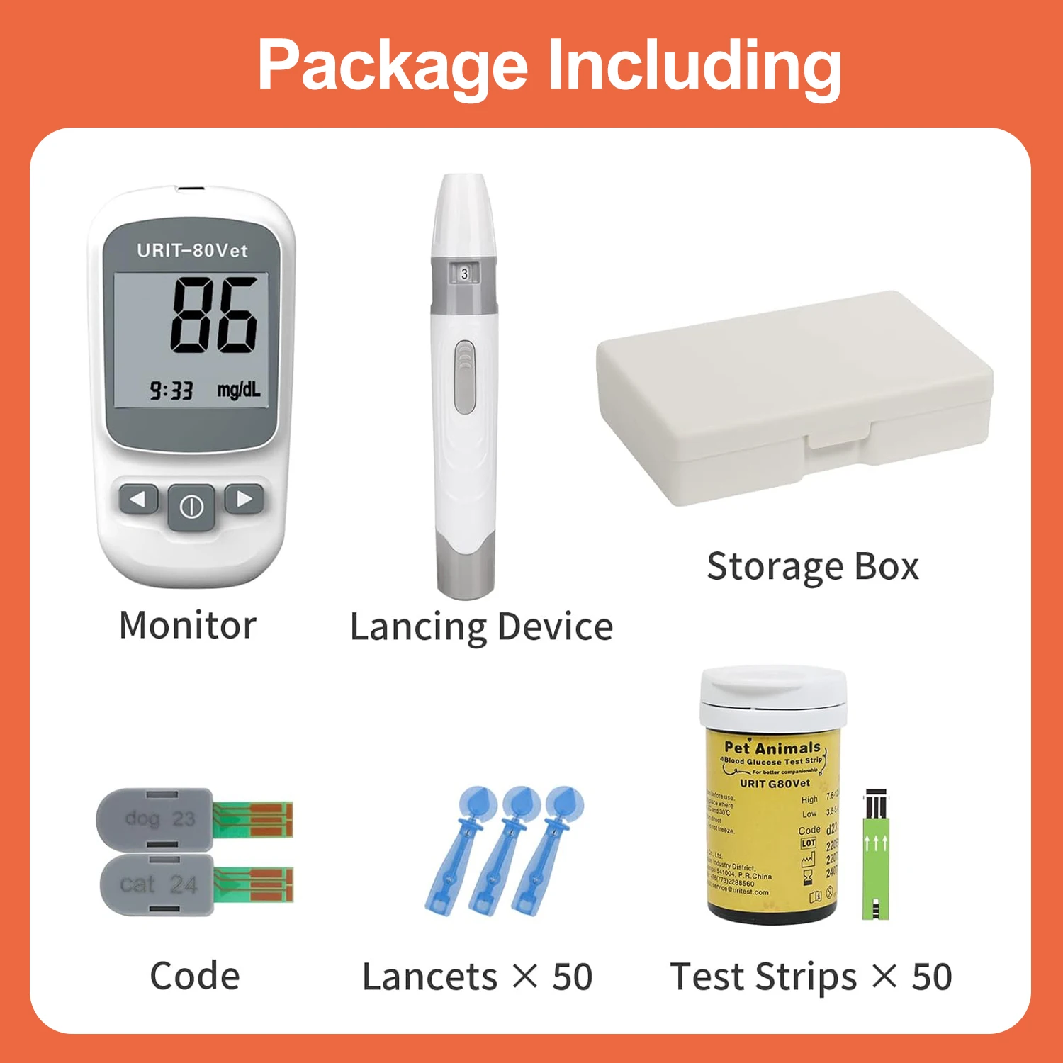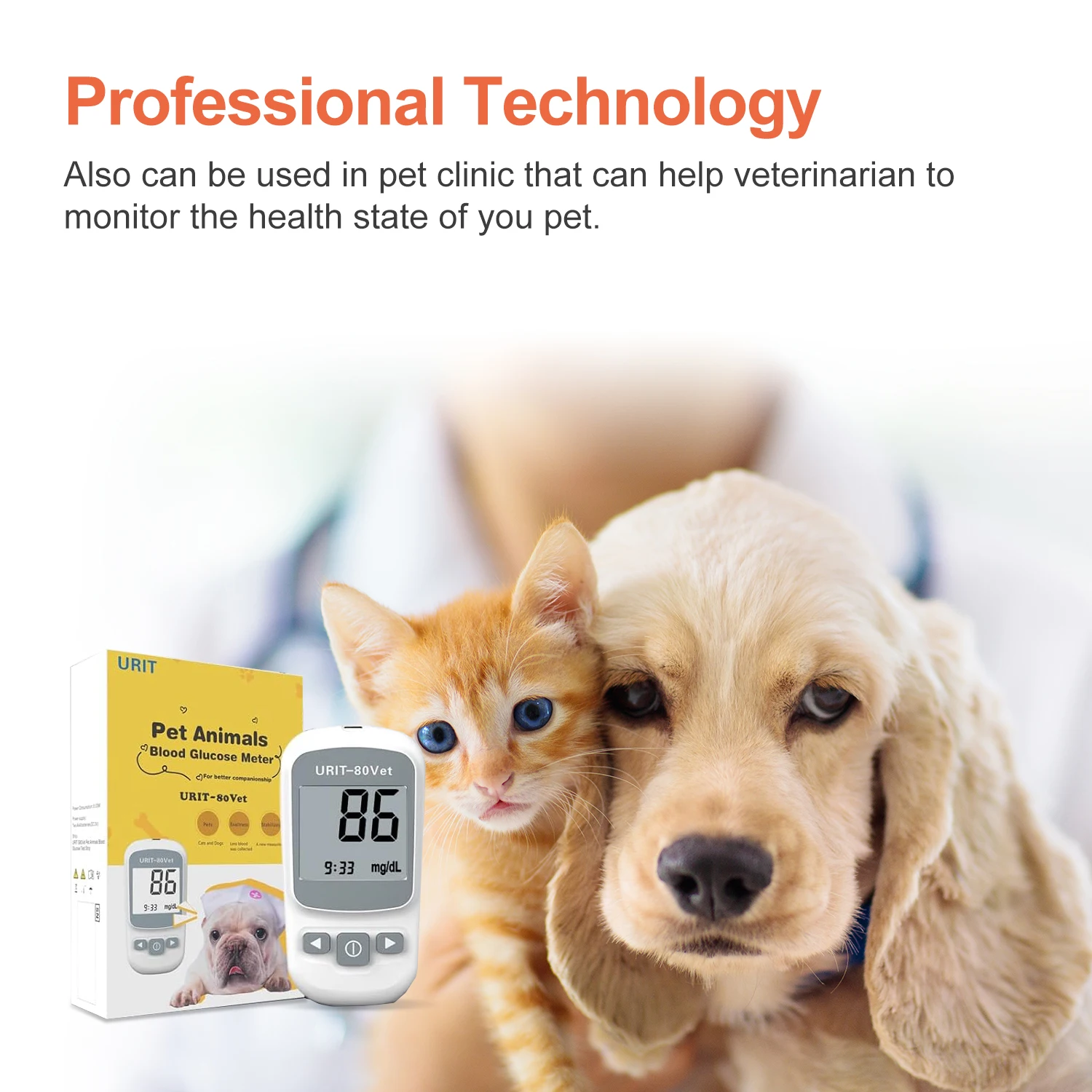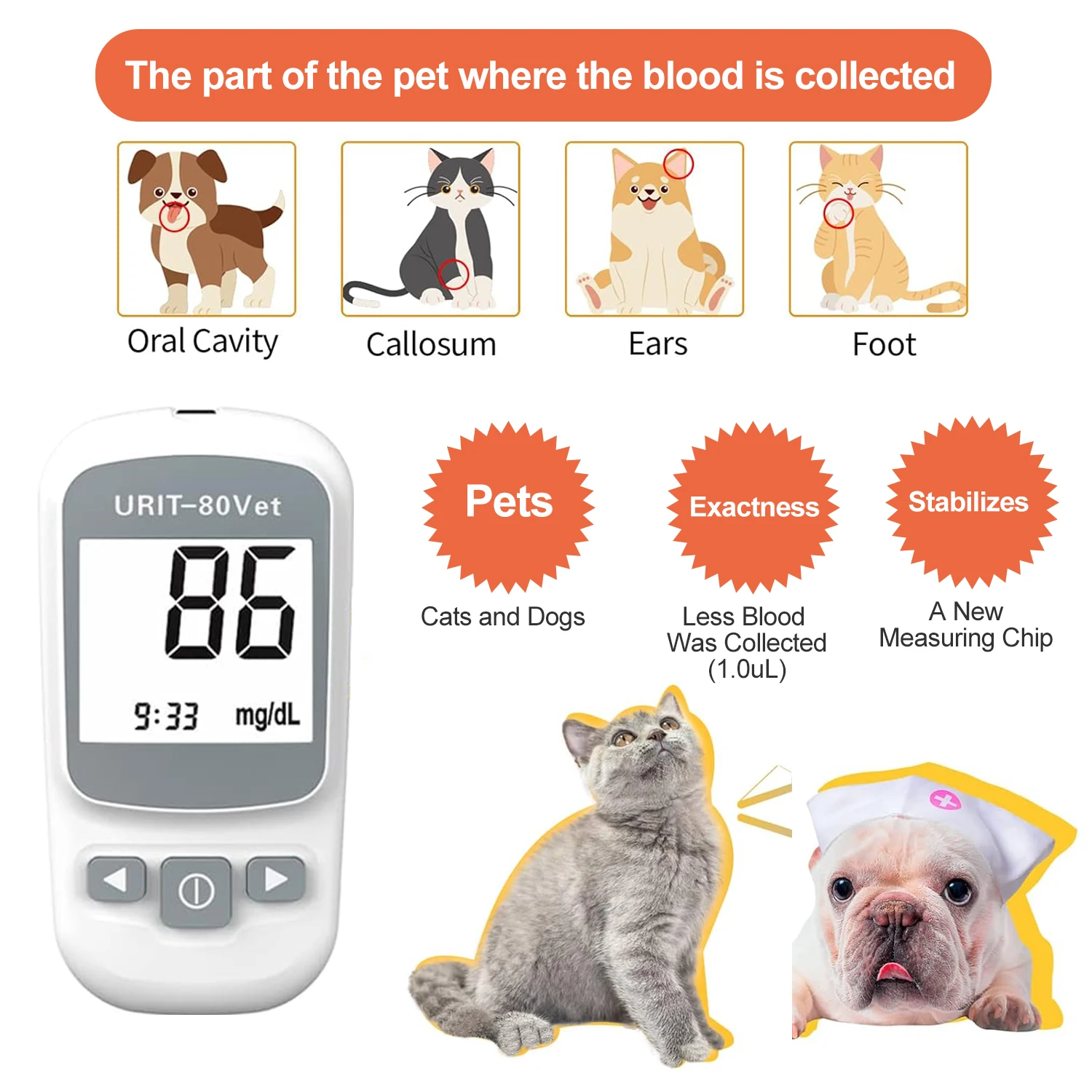 Pet Blood Glucose Monitoring Kit for Diabetic Cats, Dogs, All-in-One Solution for in-Clinic Or at Home, with Digital Results