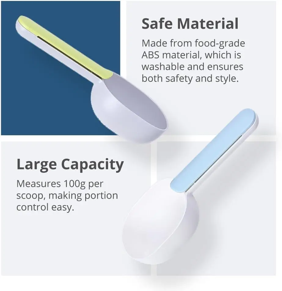 Pet Food Scoop with Ergonomic Bag Clip Handle for Cats Puppies and Small Dogs Measuring Scoop