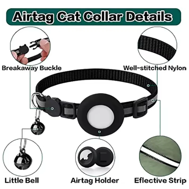 Pet protective case collar anti loss locator with reflective strip and bell collar adjustable size pet tracker accessories