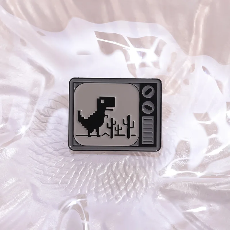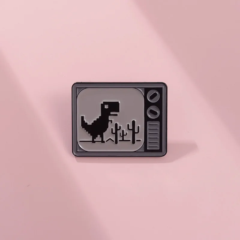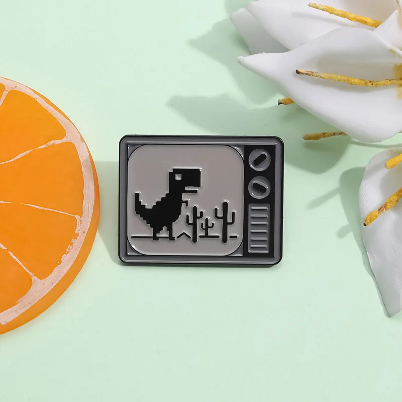 Pixel style animal enamel pins Retro TV little dinosaur brooch Backpack Hat Lapel Accessories Metal Badge Gift Jewelry Wholesale