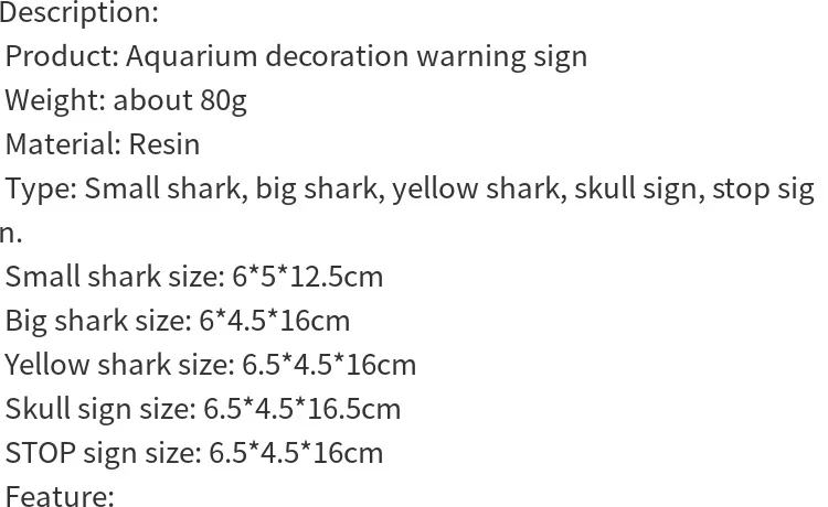 Be the first to review “Resin Aquarium Decoration Ornaments Artificial Shark Warning Sign Landscaping Accessories for Fish Tank Aquarium Background” Cancel reply